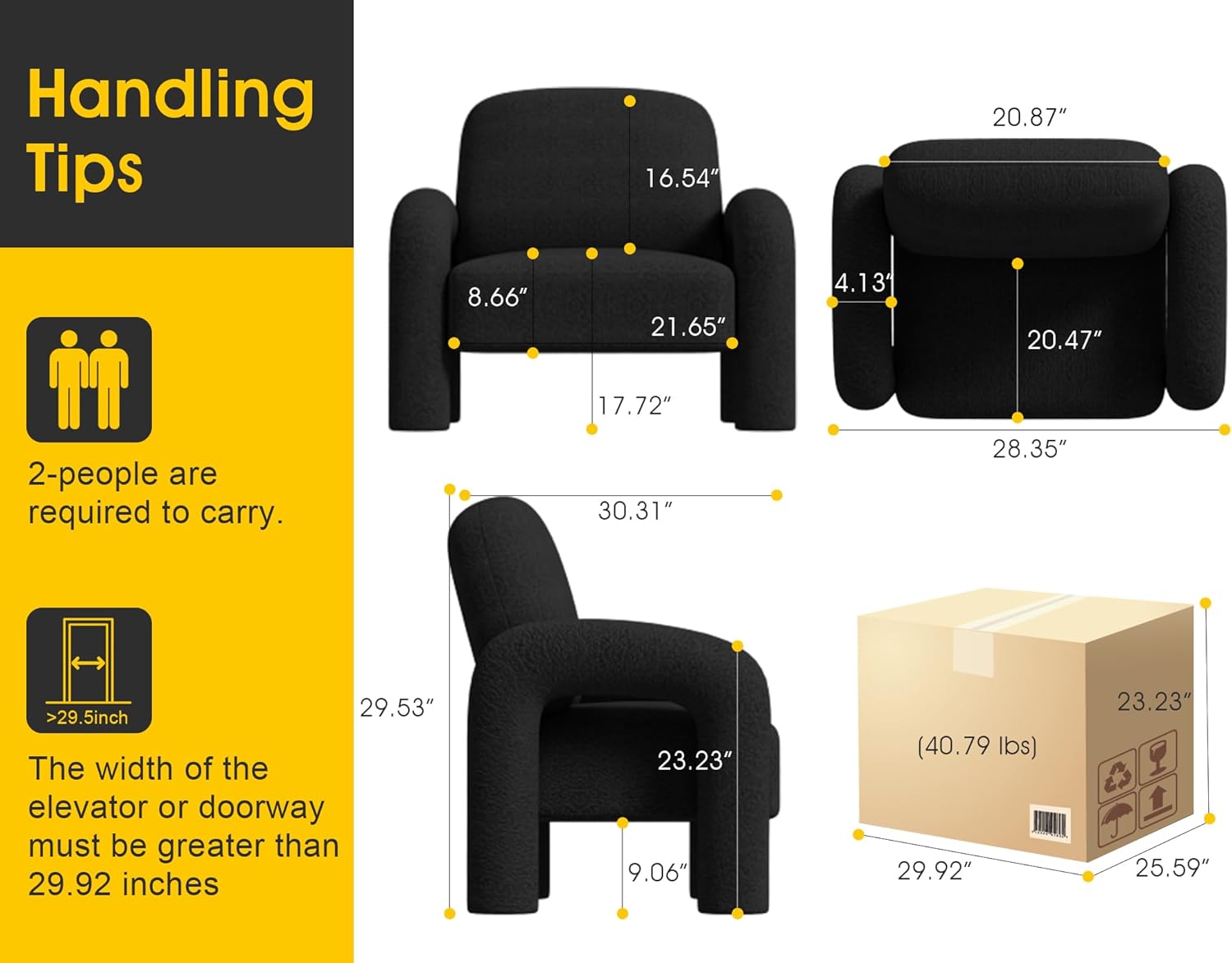- [Unique & Stylish] This single sofa Modern casual and unique style fits perfectly with minimalist decor and furniture. Add warmth to the whole space, suitable for any living room, bedroom, office or corner and other various scenes. Whether it's a living room sofa chair, bedroom chair, club chair or lounge chair, multiple uses are available.
