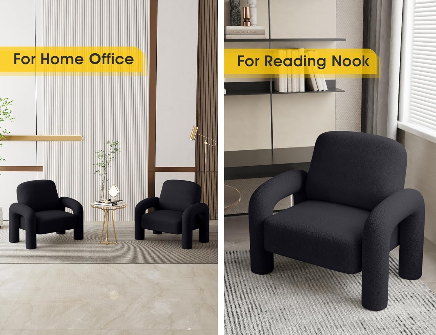 Modern Sherpa Accent Chair, Teddy Upholstered Arm Single Sofa, Cozy Fluffy Reading Chair for Living Room, Bedrooms, Corner (Black)