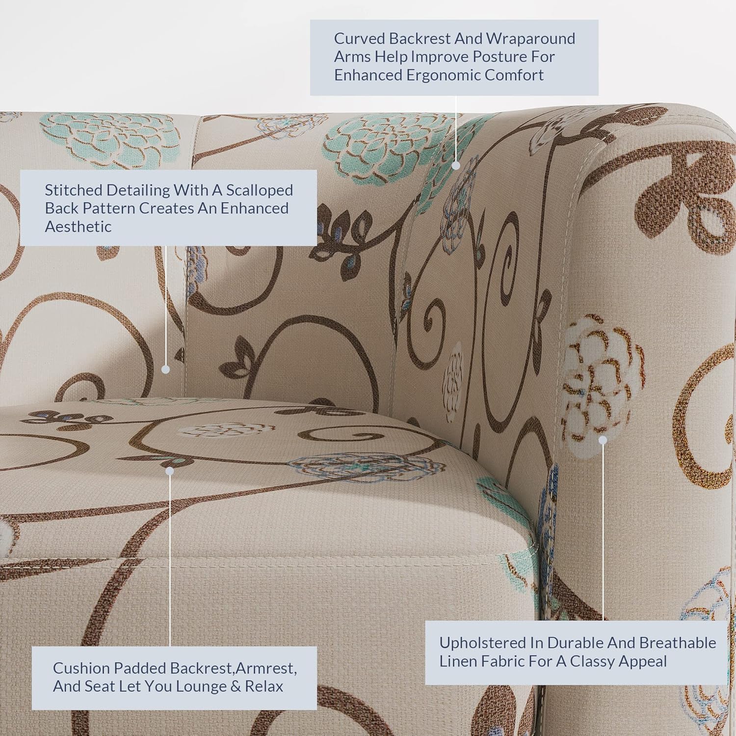 - [ERGONOMIC DESIGN] Our corner chair is designed with a curved backrest and wraparound arms, ensuring ergonomic seating with elevated comfort. Covered in breathable and durable linen, gives this accent chair an upscale look and feel.