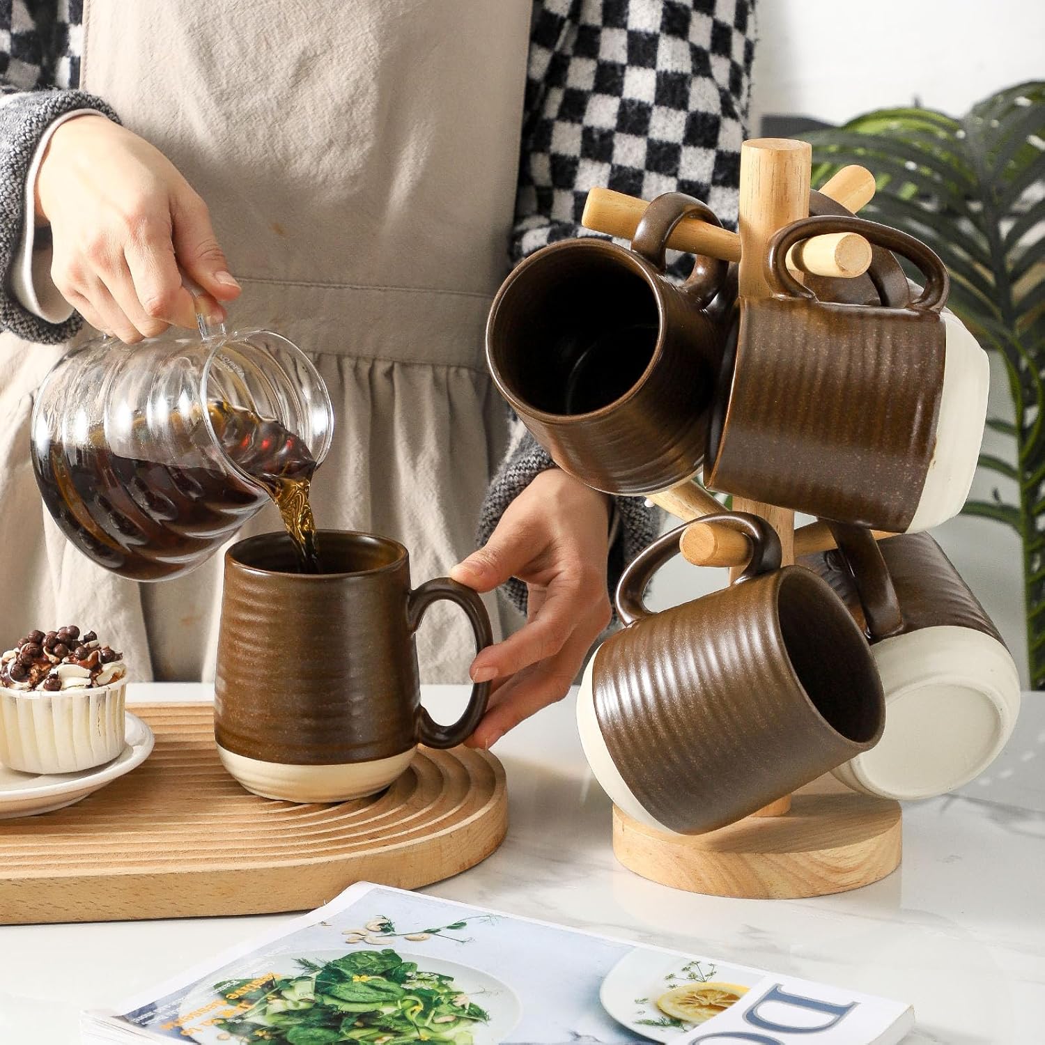 - EXQUISITE AND VINTAGE DESIGN: Hasense large coffee mugs are feature two-tone glaze which is a beautiful and classic decor for your home and kitchen. Are you looking for a coffee mug set for daily use? Then our brown coffee mugs will be the right set for you.