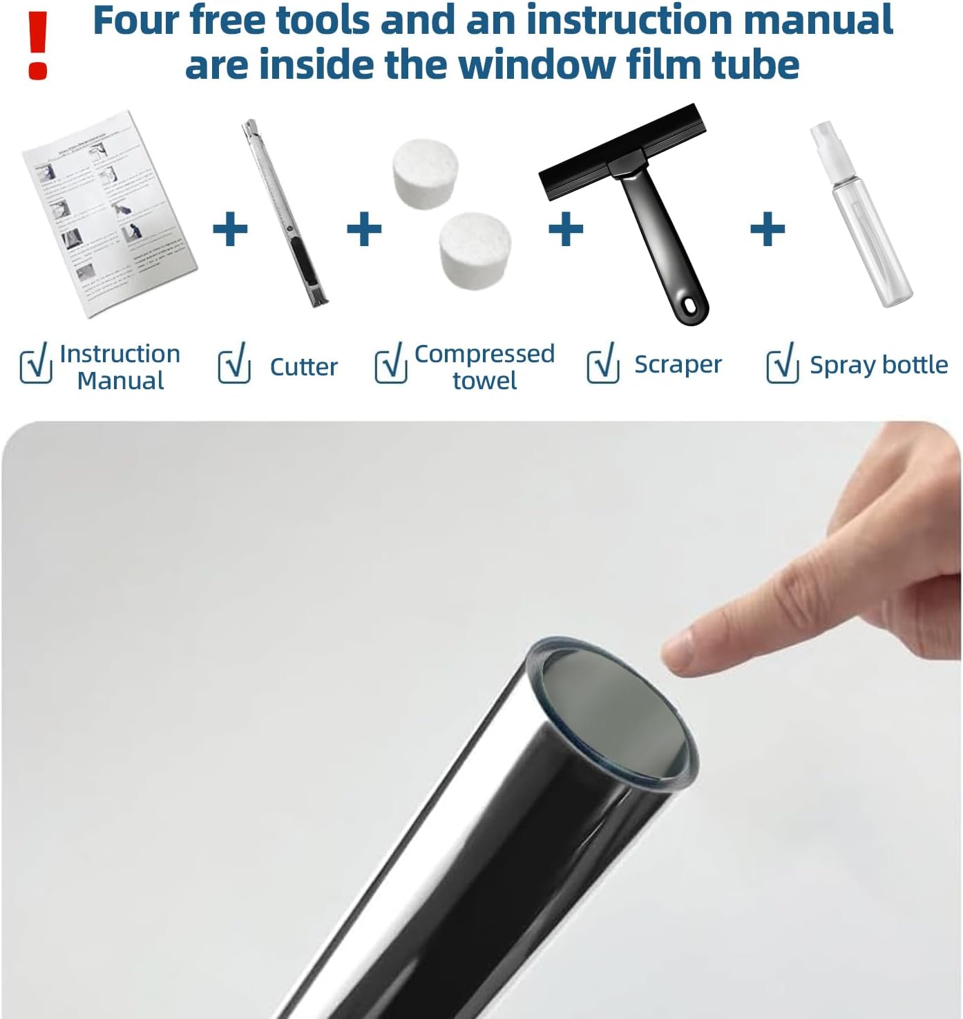 - TIPS: 1. Please note that the heat control window film may appear temporarily blurry after installation. After some time, the sun blocking window film will gradually regain clarity. 2.After installing the window heat blocking film, if you notice small bubbles/water stains that are difficult to remove, please be patient. These bubbles/water stains will naturally evaporate over time.
