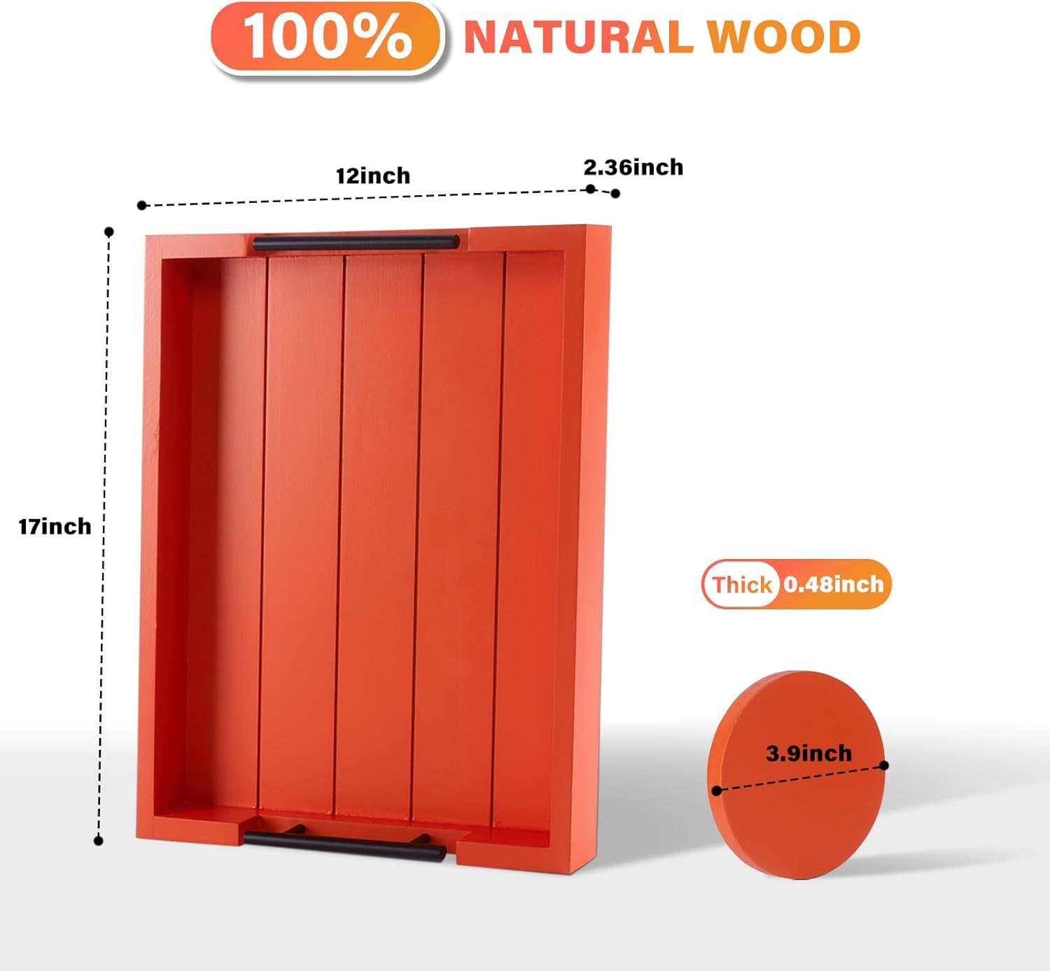 - BEAUTIFUL HANDCRAFTED DESIGN – Carefully crafted from premium quality fir wood with fine attention to details, our wooden serving tray set or tray for ottoman coffee table has ergonomically fitted metal handles for ease of carrying. Measuring 17”x 13”, this wood serving tray (rectangle) is the ideal size to carry snacks, drinks, and meals around the house without any hassle - WONDERFUL home decor!