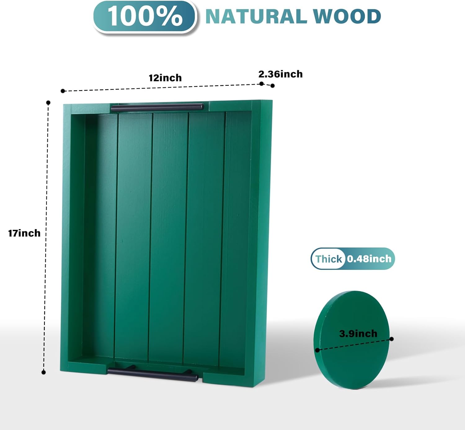 - BEAUTIFUL HANDCRAFTED DESIGN – Carefully crafted from premium quality fir wood with fine attention to details, our wooden serving tray set or tray for ottoman coffee table has ergonomically fitted metal handles for ease of carrying. Measuring 17”x 13”, this wood serving tray (rectangle) is the ideal size to carry snacks, drinks, and meals around the house without any hassle - WONDERFUL home decor!