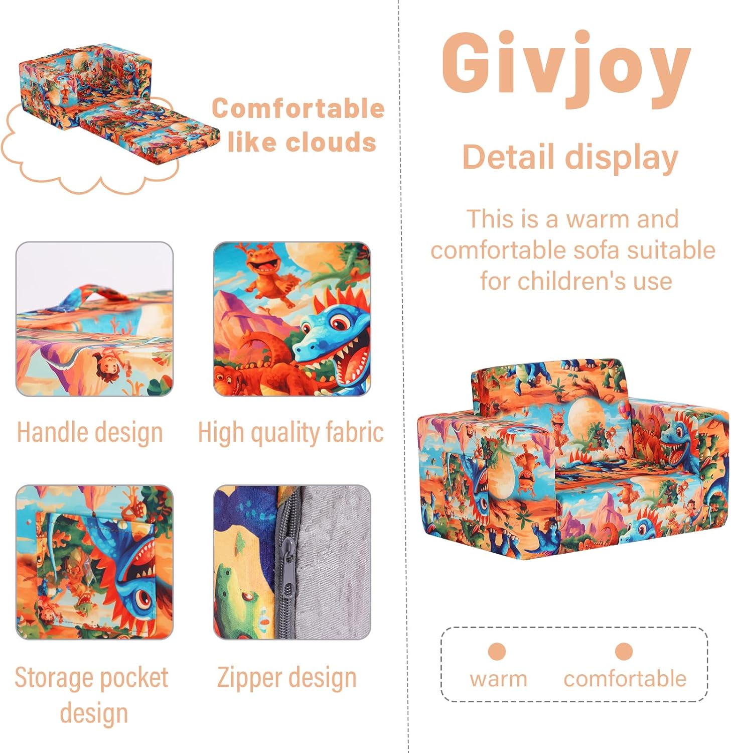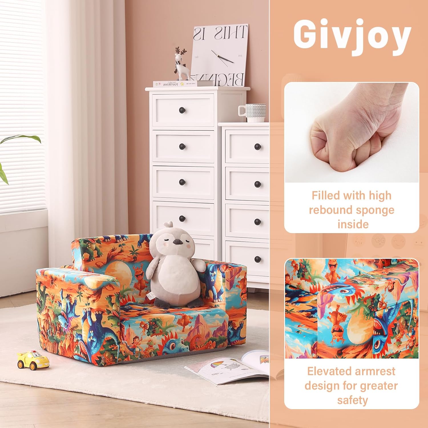 - ăSafe & Skin-friendly MaterialăThe cover of 2-in-1 kids sofa couch is made of high quality short plush which is durable and skin-friendly. High density and hardness of the supportive foam keep the sturdy toddler sofa couch in shape and provide our lovely kids all-day comfort. Its premium quality also ensures immediate expansion without needing a long wait.