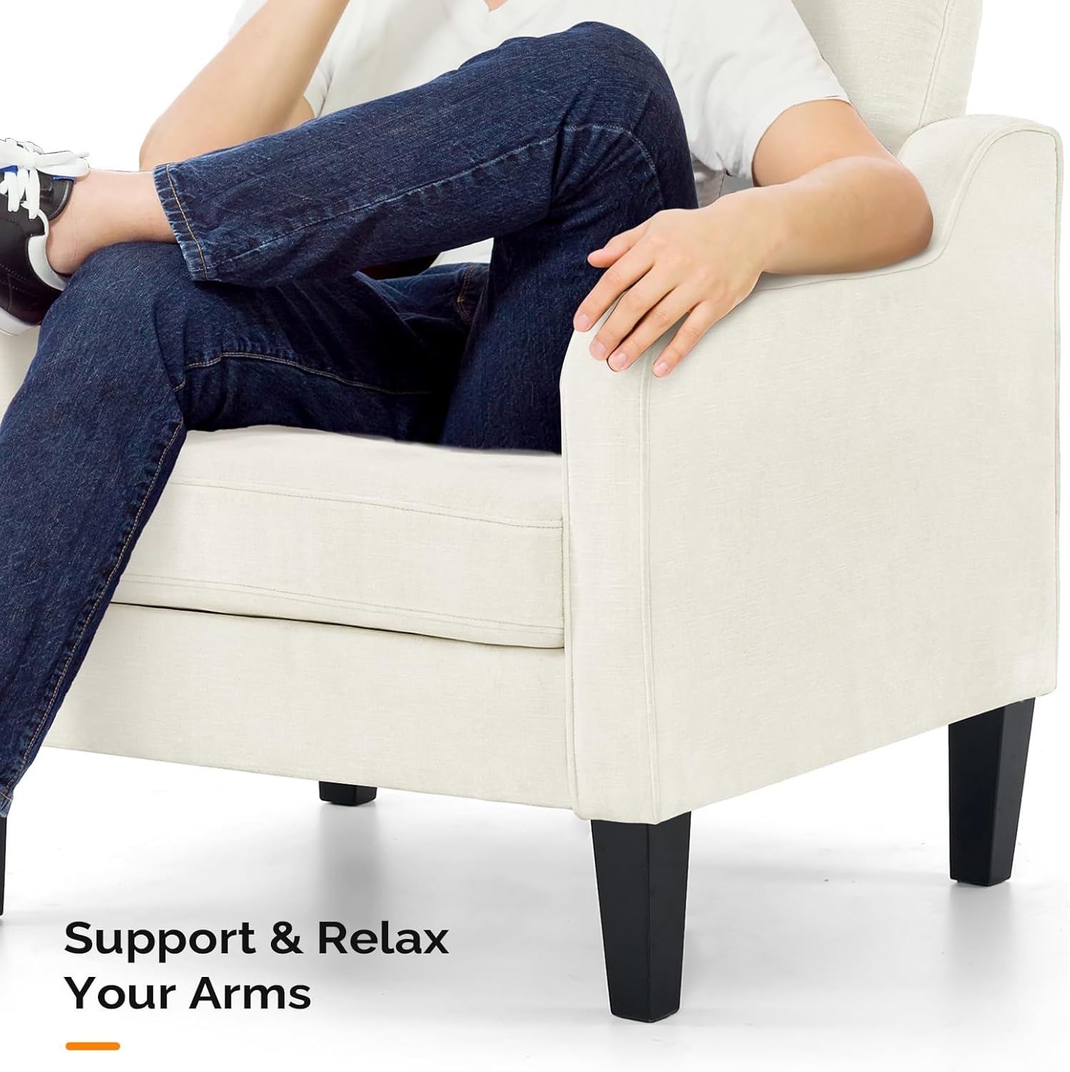 VINGLI Mid Century Modern Accent Chairs for Living Room, Cream White Comfy Reading Chair Soft Chenille Sofa Chairs Upholstered Side Armchair for Living Room, Bedroom, Apartment