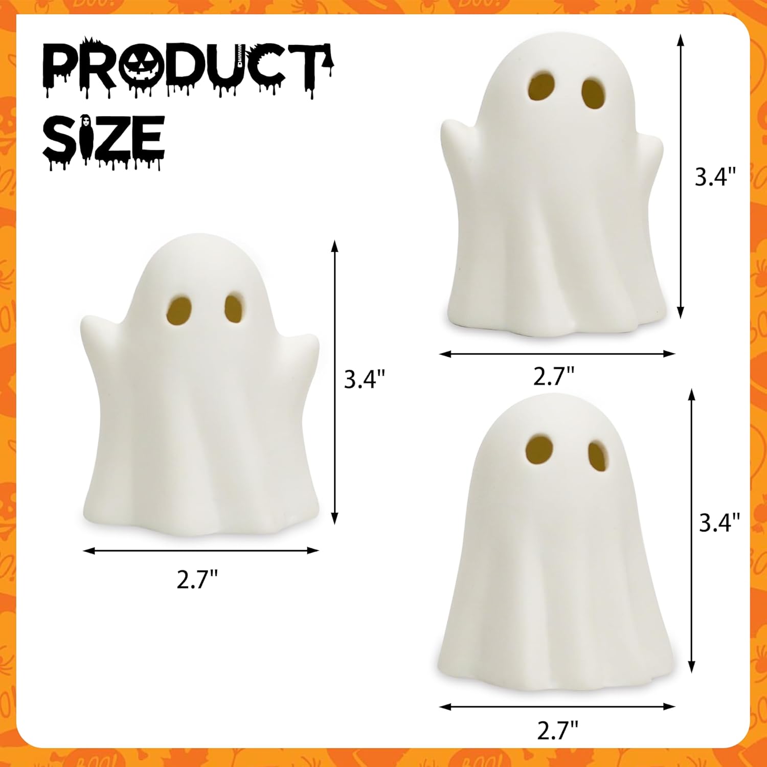 NEROSUN 3 Pack Cute Ghost Light Up Halloween Decor, LED White Ceramic Spooky Flameless Lanterns Decorative Light Fall Halloween Party Decoration for Home Bedroom Room Table Shelf