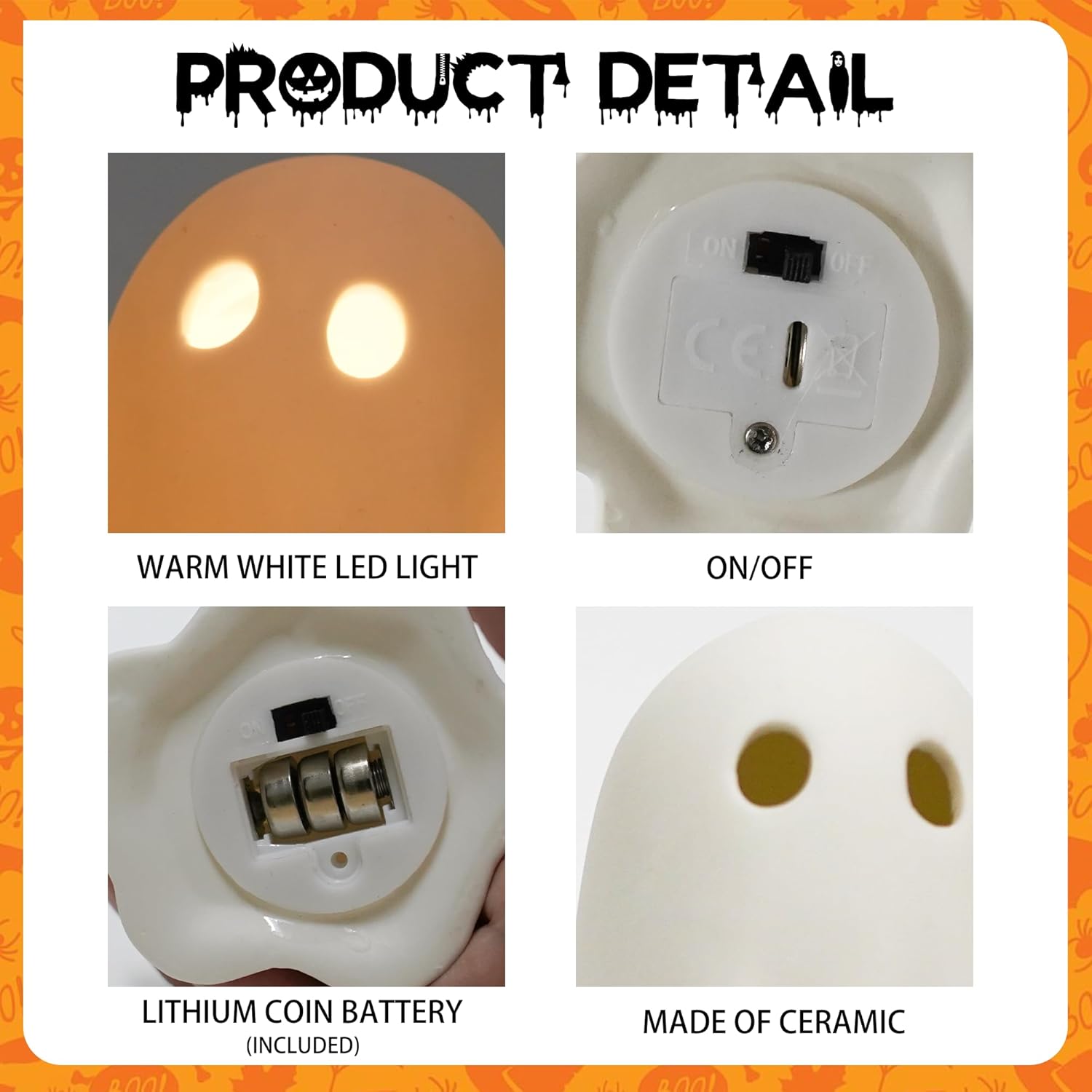 - Versatile Decoration: These light-up ghost lights make a perfect addition to any surface in your home. Whether you place them on a table, shelf, mantel, or counter top, they are sure to enhance your holiday decor. Their compact size allows for flexible placement options, adding charm to any room.