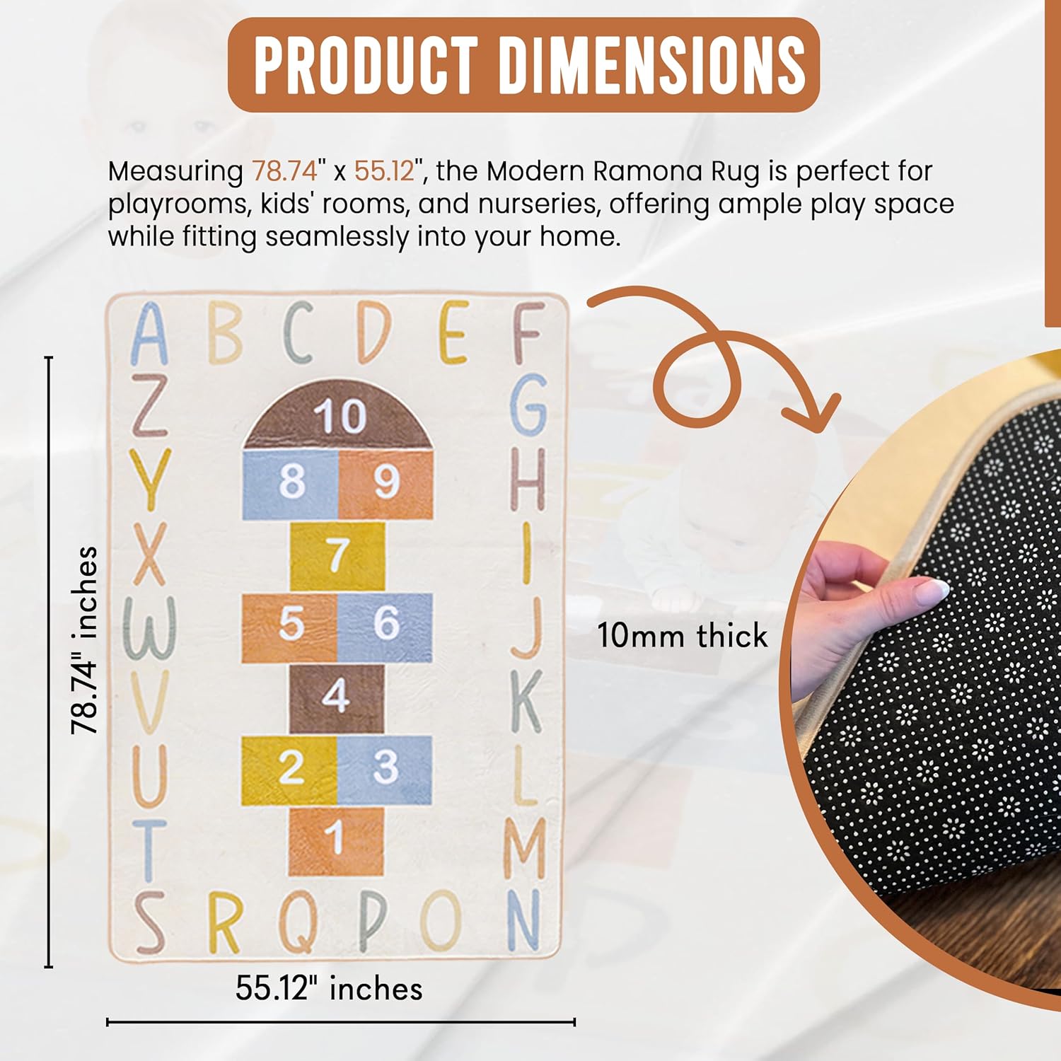 - ššš«šššš šš„šš² šš©ššš: The gorgeous kids play rug measures 4'7" x 6'6" and is 10mm thick. For those who prefer metric measurements, it converts to 140 x 200 cm or 55.12 x 78.74 inches. Kids room hopscotch rug provide ample space for play and activities, making it a perfect addition to any child's room or play area. The abc rug for kids playroom comes in a generous size and cozy thickness, accommodating various activities and ensuring comfort for your little ones.