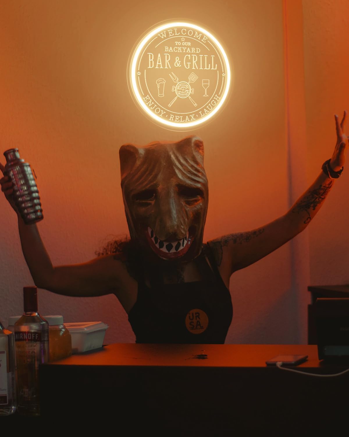 - 🍾【Perfect Wall Decor】Use this bar and grill neon sign in your bar to create a unique atmosphere and make a wonderful addition. It's a really nice mood light and it definitely adds flavor to an otherwise plain space. This led bar sign can also be used to decorate many scenes, such as back yard, patio, poolside, bedroom, home pub, game room, man cave, BBQ party and so on.