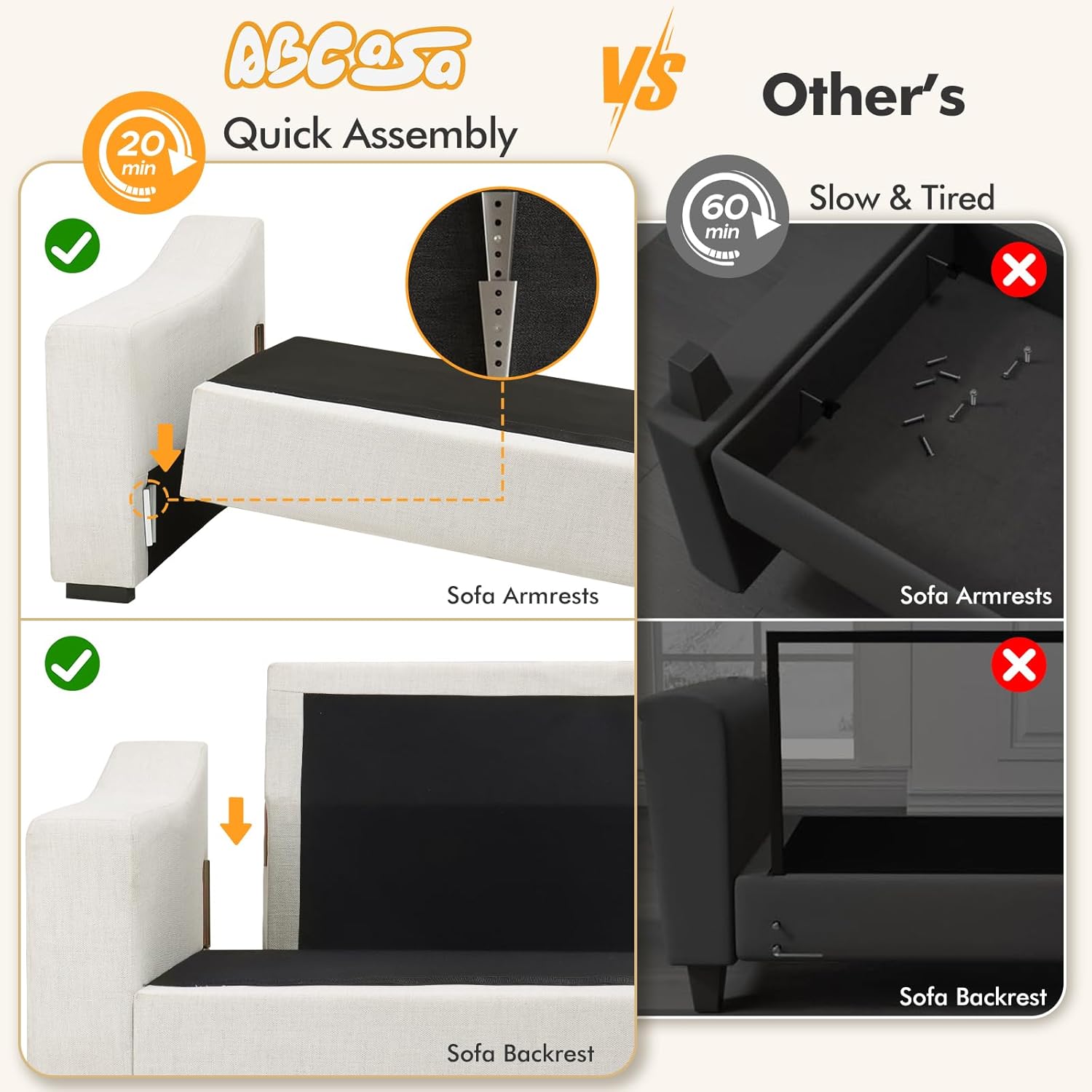 - MODERN SECTIONAL SOFA - The ABCASA sofa range offers a versatile sectional design with loveseat, L, and U sectional options to suit different requirements. It is cost-effective, flexible, and customizable. It is the smart solution for maximizing your living space.