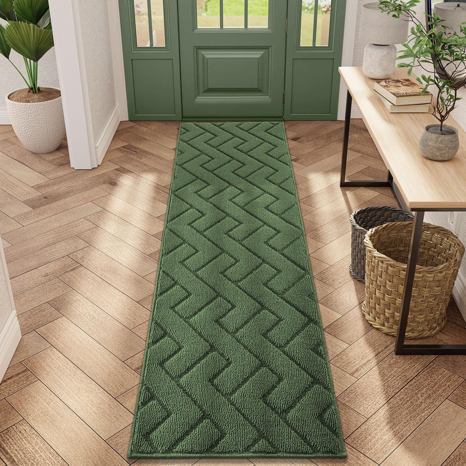 hicorfe Indoor Doormat,Front Back Door Mat Rubber Backing Non Slip Door Mats 20"x59" Absorbent Resist Dirt Entrance Doormat Inside Floor Mats Entryway Washable Low-Profile for Patio,Garden(Green)