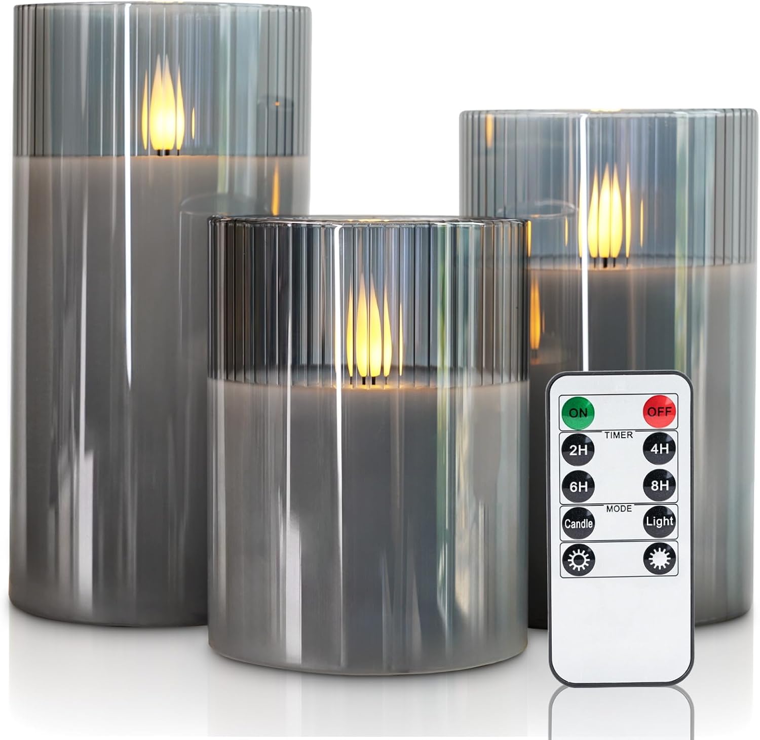 - Ribbed Glass Flameless Candles - Our battery candles are carefully crafted from real wax with unique ribbed glass shell. These electric candles look similar to traditional candles, but do not emit pungent odors and are safer