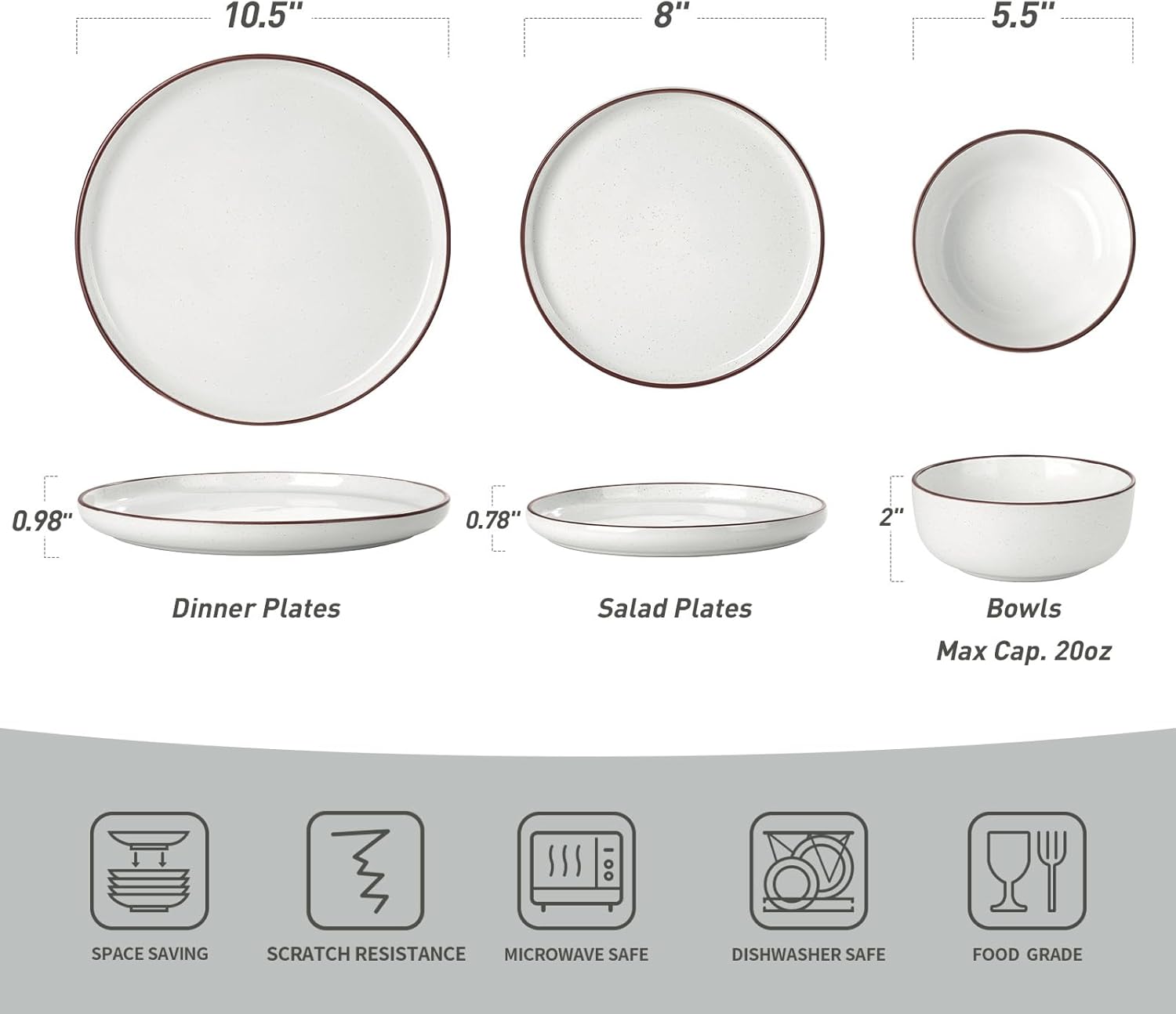 - 【FOOD GRADE NATURAL GLAZE】All of our dinnerware sets are made of food grade glaze. You can safely use them to serve steaks, salads or desserts, no need to worry about any harmful substances leaching into the food.