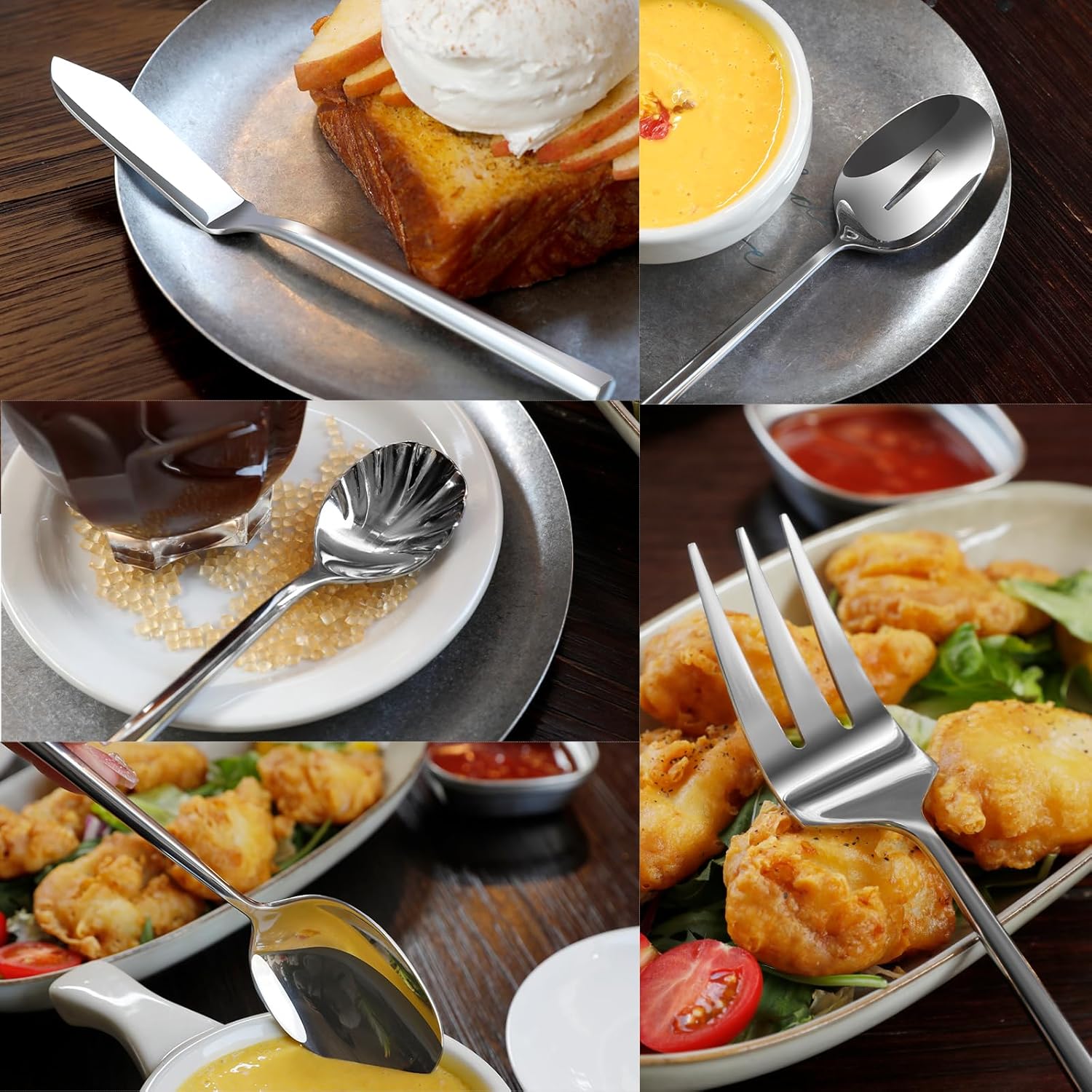 - 【5-PIECE SET】Includes 1 serving spoon, 1 serving fork, 1 slotted serving spoon, 1 butter knife and 1 sugar spoon