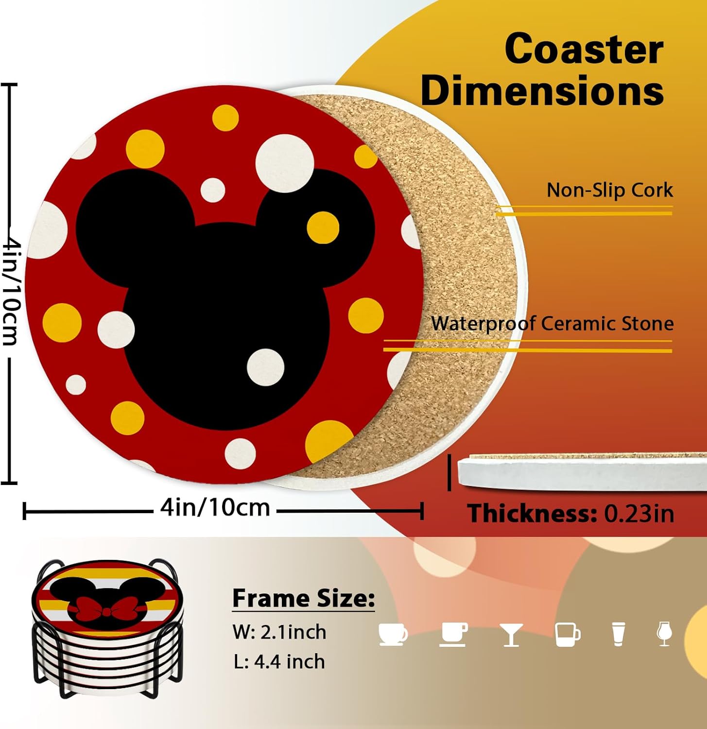 - Exquisite Design: This coasters set showcases 6 different unique and stylish designs, which are carefully designed by our designers. Drink coasters printed with cute polka dots, stripes patterns, bright colors, vivid and beautiful. It is not solely a coaster set, but also a decorative element. Featuring with chic design, these desk coasters will look adorable on your table, and liven up your table decor
