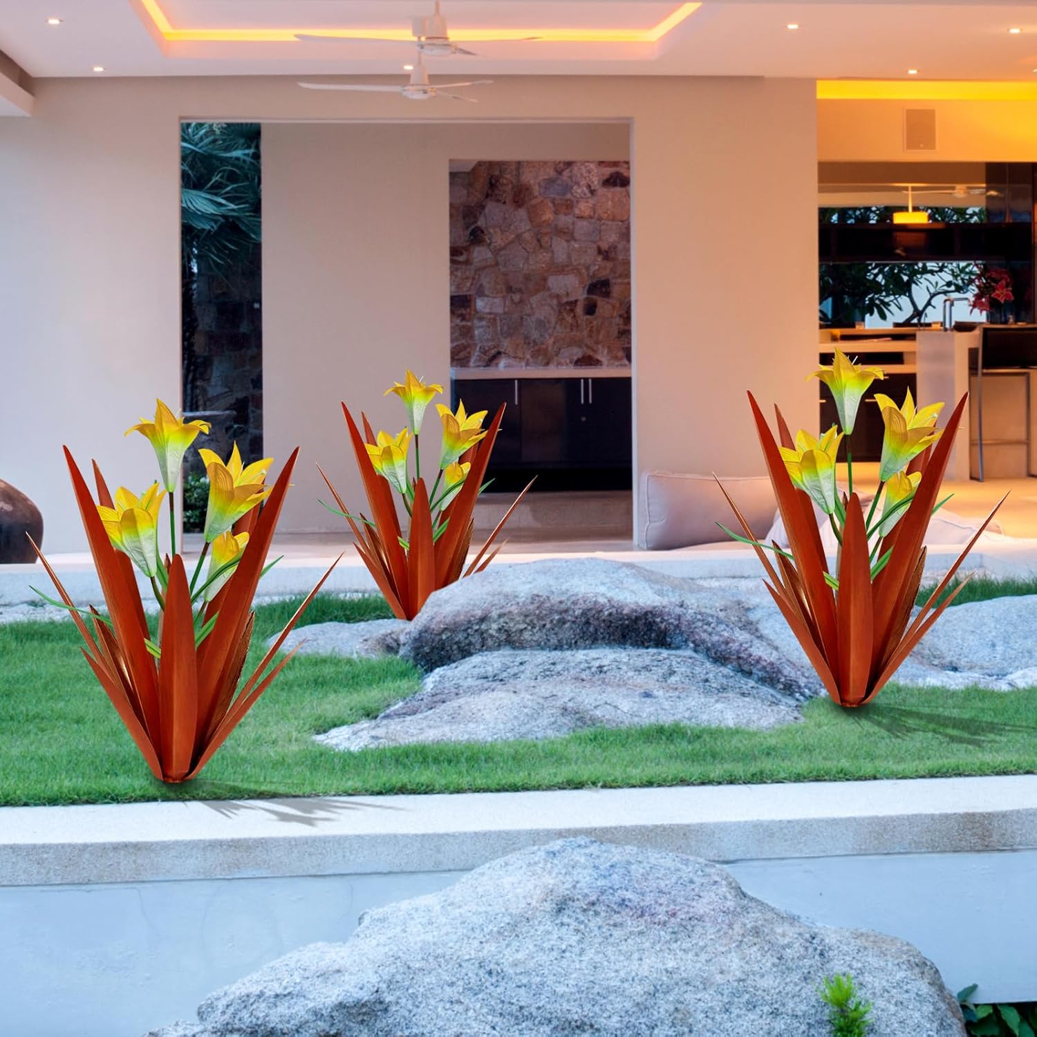 Homight Metal Agave Plant Outdoor Decoration, 3 Big Yellow Lilies, HM-390-345