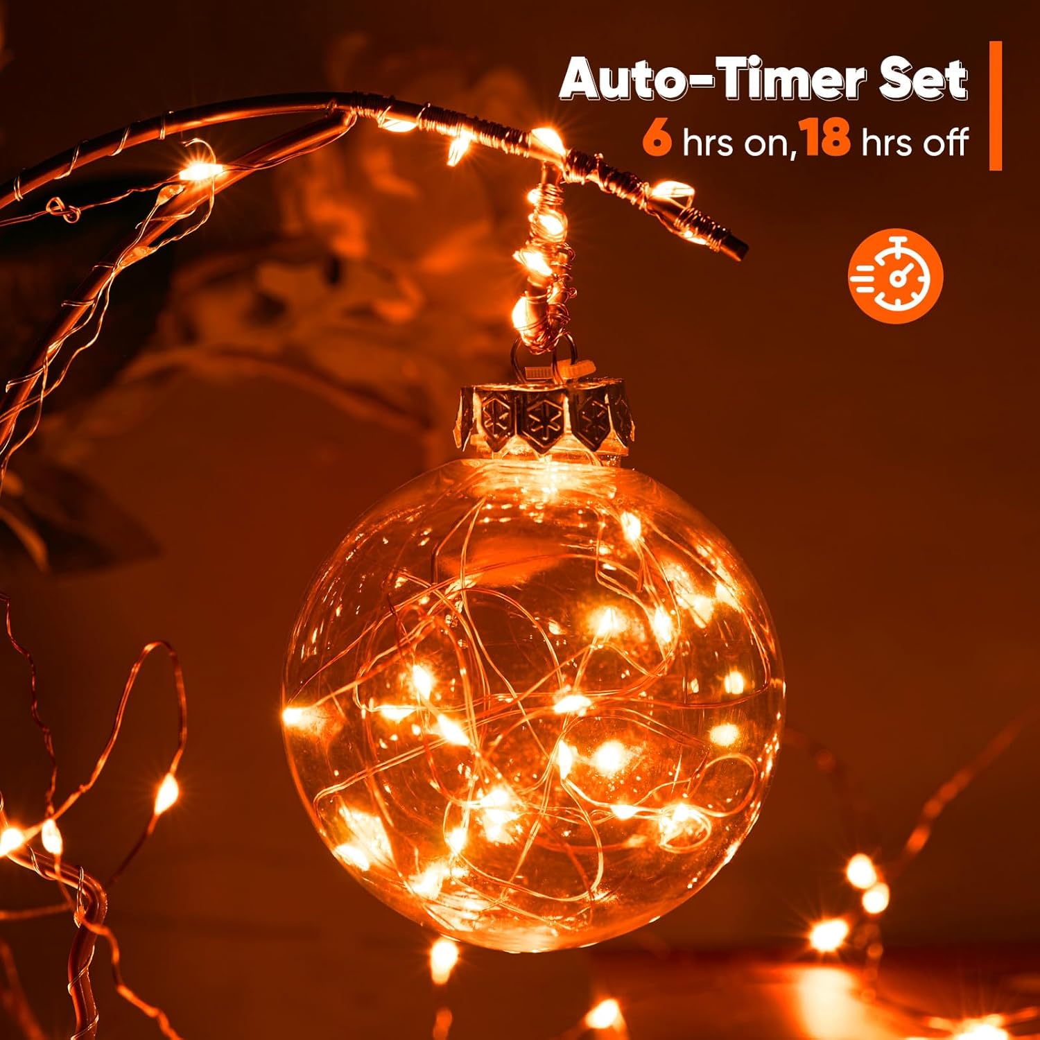 2 Pack 65.6 Ft. Battery Operated Outdoor String Lights with Remote & Timer, LED Orange Fairy Lights, Waterproof Twinkle Lights for Bedroom, Dorm, Mason Jar, Wedding, Party, Christmas