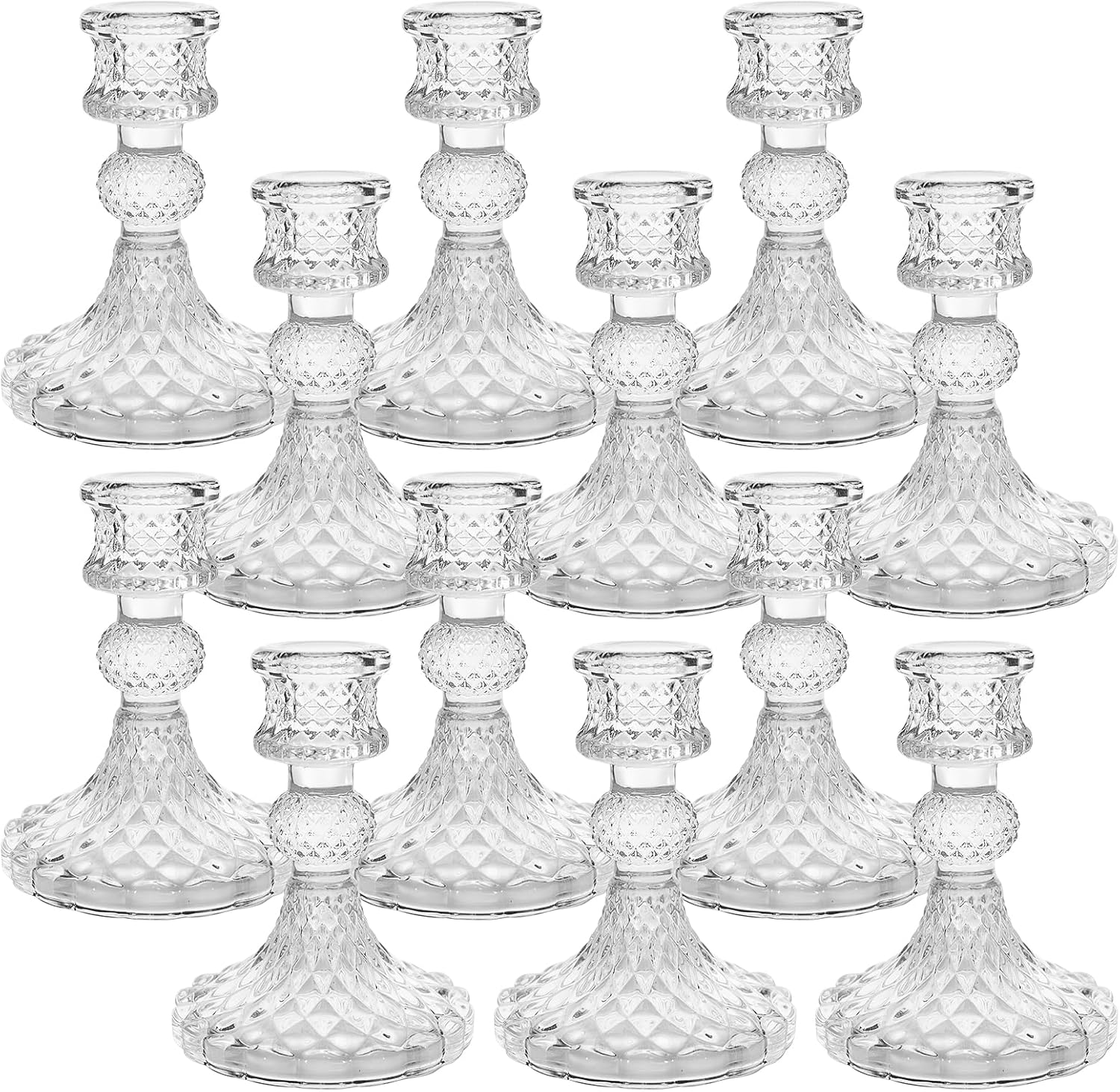 Candlestick Holders Set of 12-4" H Crystal Taper Candle Holders, Thick Glass Candle Stand with Diamond Pattern for Table, Wedding, Party, Church Decoration, Home Decor