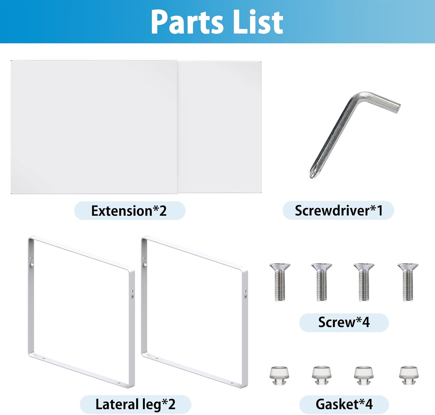- Easy to Install:Easy to assemble with a clear manual. Comes with accessories and step-by-step instruction, it will be easy for you to install this storage shelves , no drilling needed! We use non-slip suction feet to prevent the countertop organizer from sliding the table.The package includes extension*2 ,lateral leg*2,screw*4,gasket*4 and screwdriver*1
