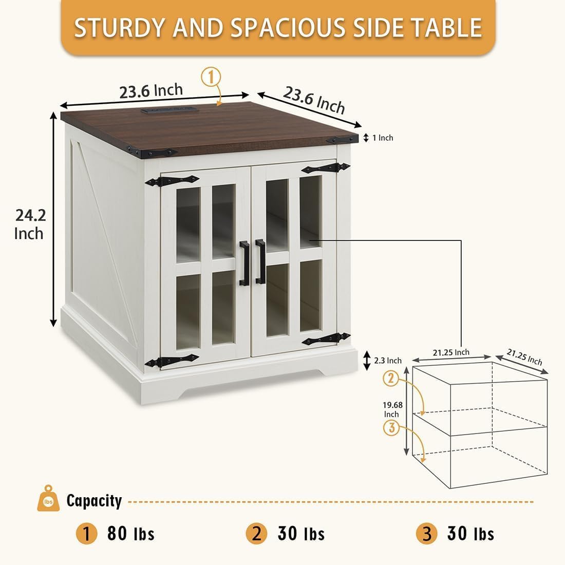 - Eye-catching Farmhouse design : Give your space a dose of country style with this Natural Wood Farmhouse End Table! You’ll love the rustic details of its tempered glass door and barn door design On the side. Its natural wood finish is sure to lighten up your space.