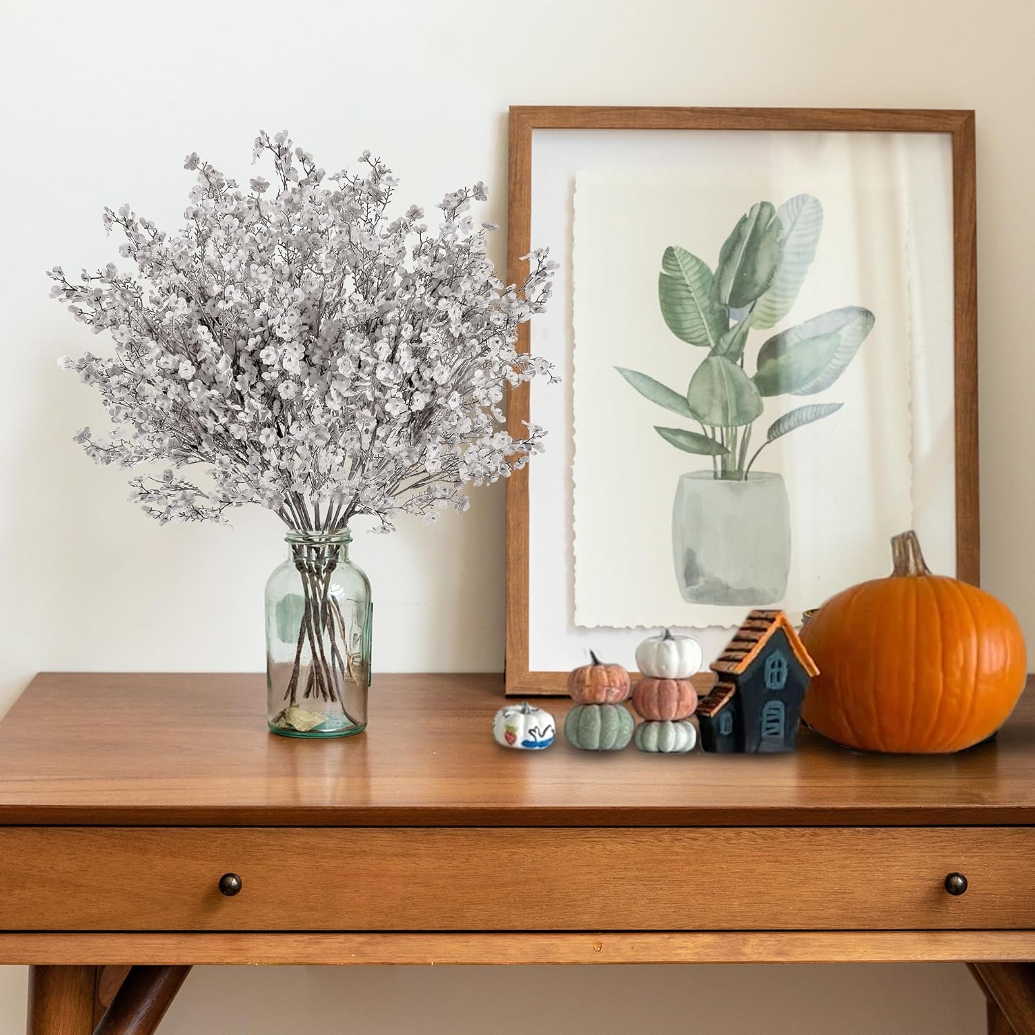 Sggvecsy 15 Pcs Babys Breath Artificial Flowers Gypsophila Bouquets Bulk Real Touch Fake Silk Flowers for Home DIY Floral Arrangement Table Centerpiece Fall Thanksgiving Autumn Decoration (Grey)
