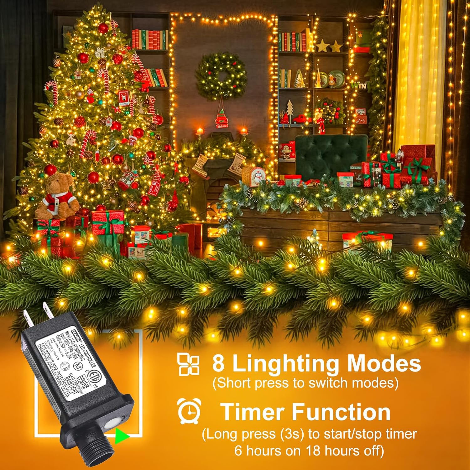 - [Timer & Memory Function] - Long press the button on the adapter to activate the timer function, the string lights will 6 hours on and 18 hours off. Moreover, the led Christmas lights indoor have a built-in memory chip, it will intelligently remember the last lighting mode you selected, no need to reset it every time.
