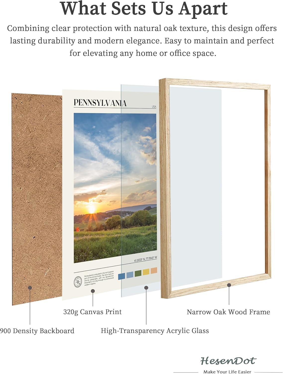 - Natural OAK Frame: Handcrafted from natural OAK, our frames feature high-transparency organic glass, ensuring superior performance and durability compared to ordinary glass-framed products.