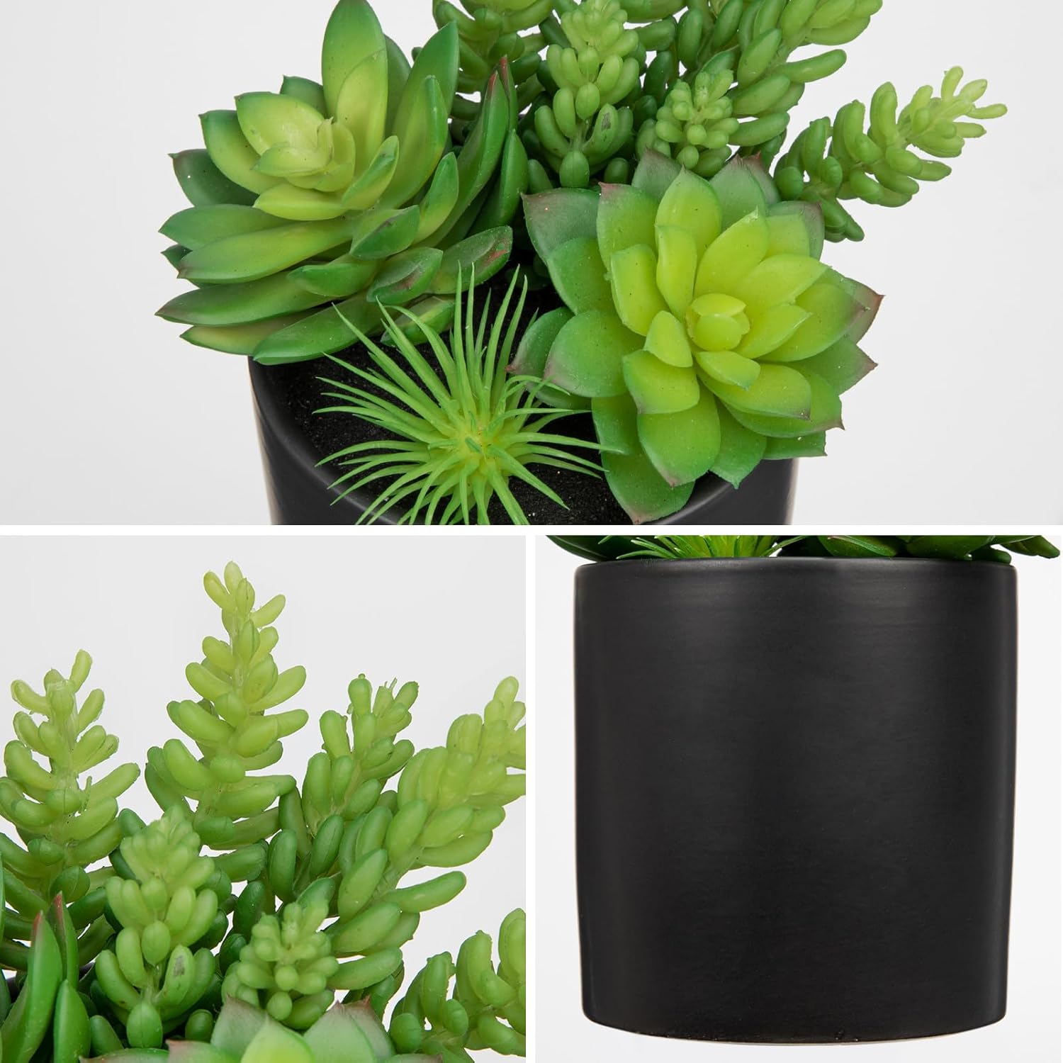 Artificial Succulents in Pots Faux Succulents Plants Fake Succulent Arrangement Potted Plants with Black Ceramic Vase for Office Desk Bathroom Shelf Living Room Indoor Home Decor
