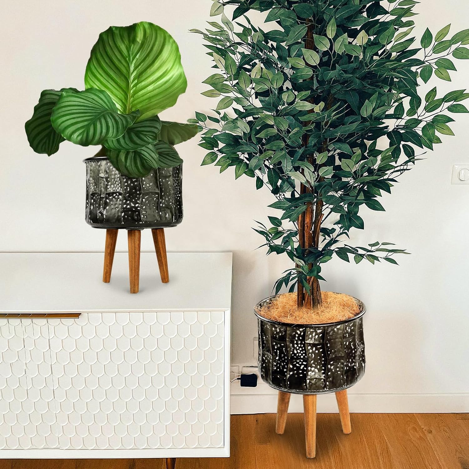 - Perfect Sets:The tall plant pots include set of 2,one is large the other one is small,which is perfect for different plants and indoor decor. More importantly, we added another two inner plastic planter pots for these sets