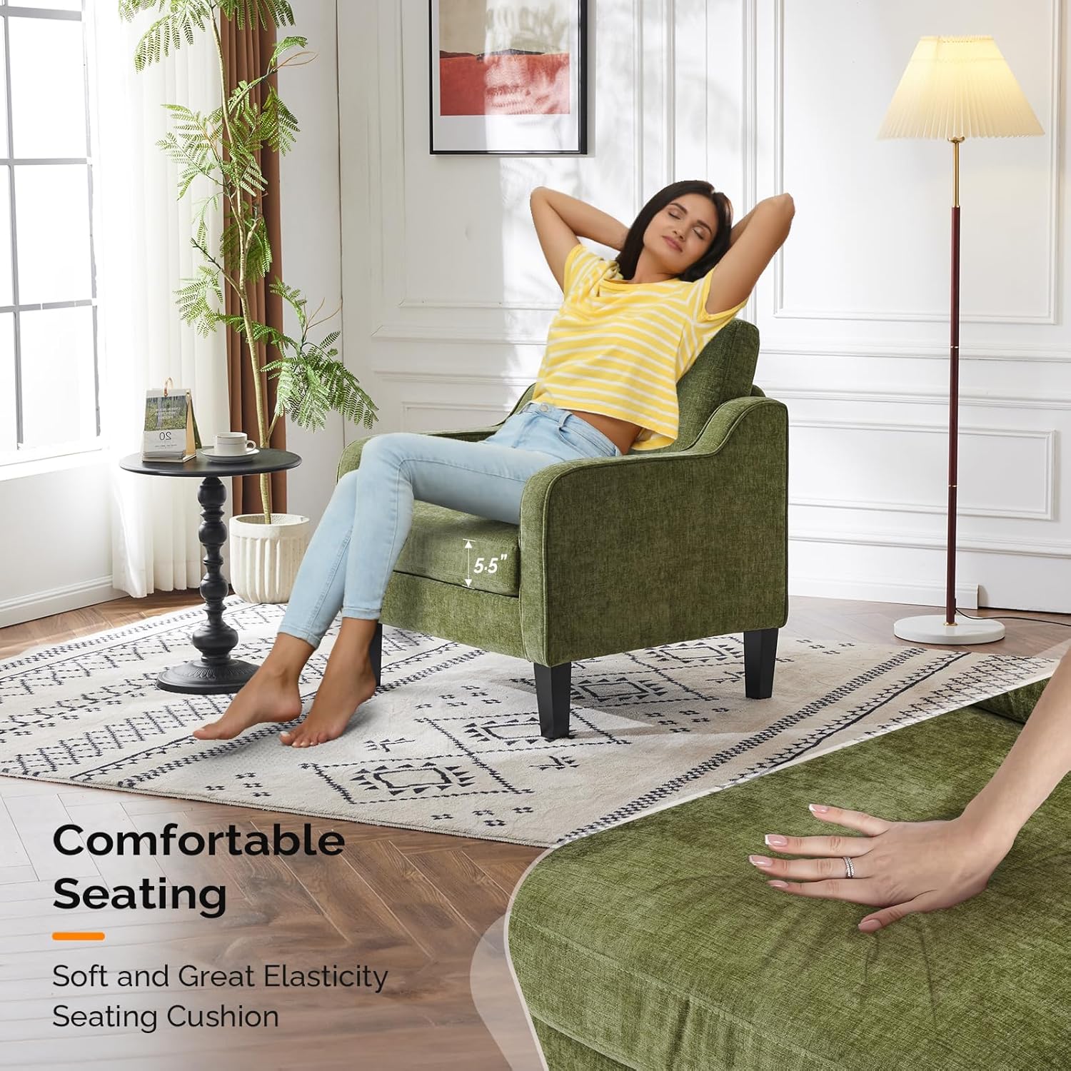 VINGLI Accent Chair for Living Room Chairs Olive Green Reading Chair for Bedroom Scooped Arm Chair Mid Century Modern Accent Chairs Upholstered Comfy Chair for Apartment, Waiting Room