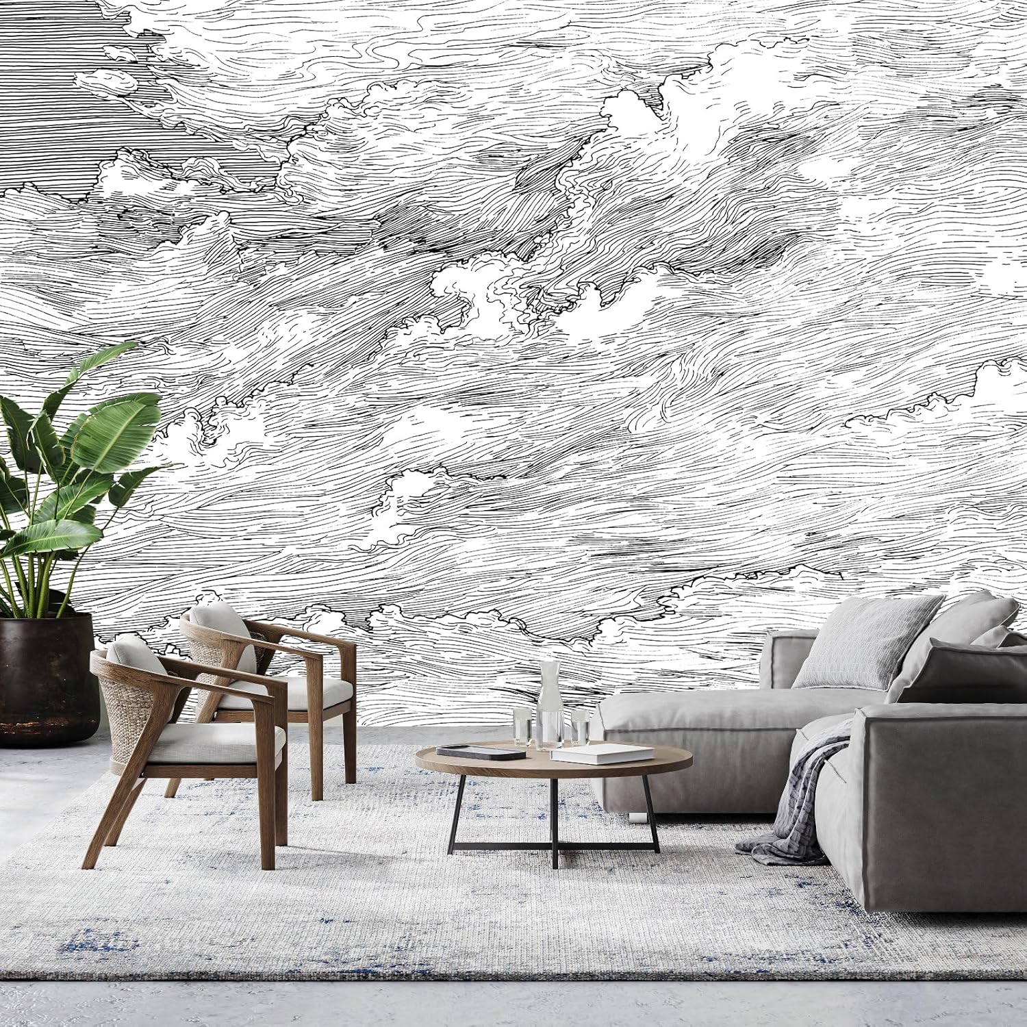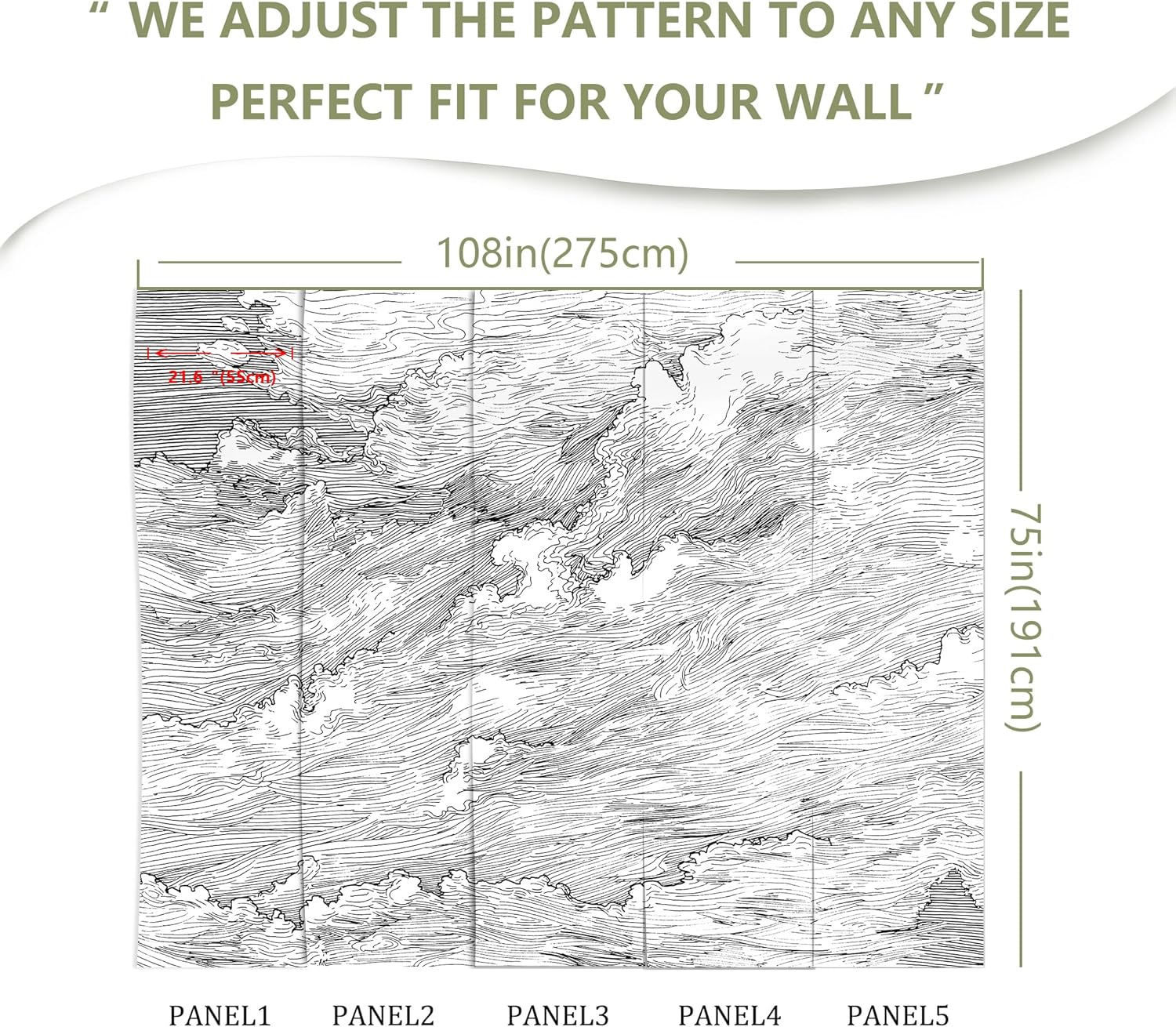 - MATERIAL - Black and white cloud murals for walls is made of premium silk material. Ecological printing with lightfast, UV resistant lasting colors. Durable and waterproof, fadeless and odorless, non-toxic and eco-friendly.