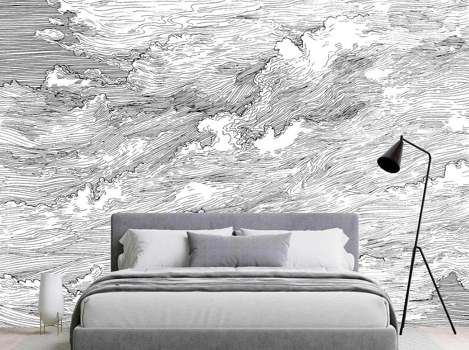 - MATERIAL - Black and white cloud murals for walls is made of premium silk material. Ecological printing with lightfast, UV resistant lasting colors. Durable and waterproof, fadeless and odorless, non-toxic and eco-friendly.
