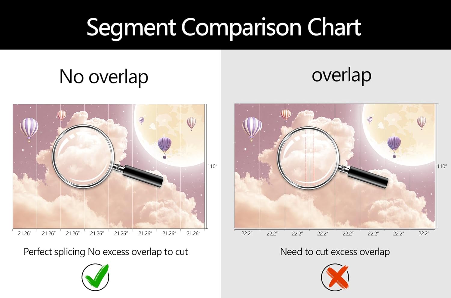 - Mural Size: The total size of this mural wallpaper is 170" x 110" / 432CM x 280CM (W x H), cut into 8 pieces, each measuring 21.26" x 110", for easy installation.