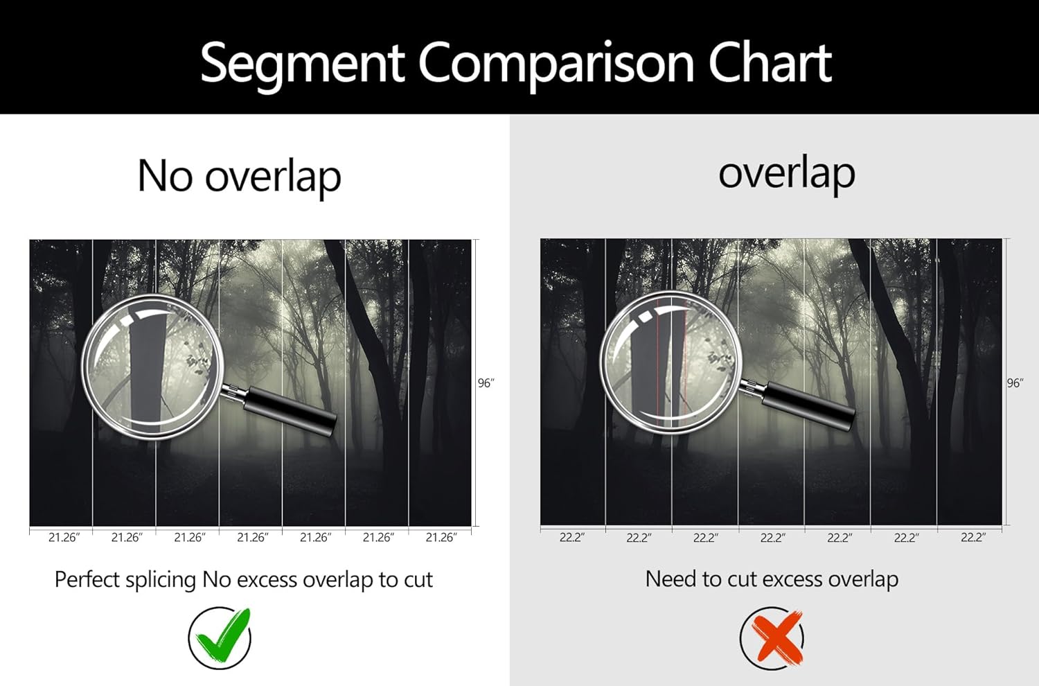 - Mural Size: The total size of this mural wallpaper is 149" x 96" / 378CM x 244CM (W x H), cut into 7 pieces, each measuring 21.26" x 96", for easy installation.