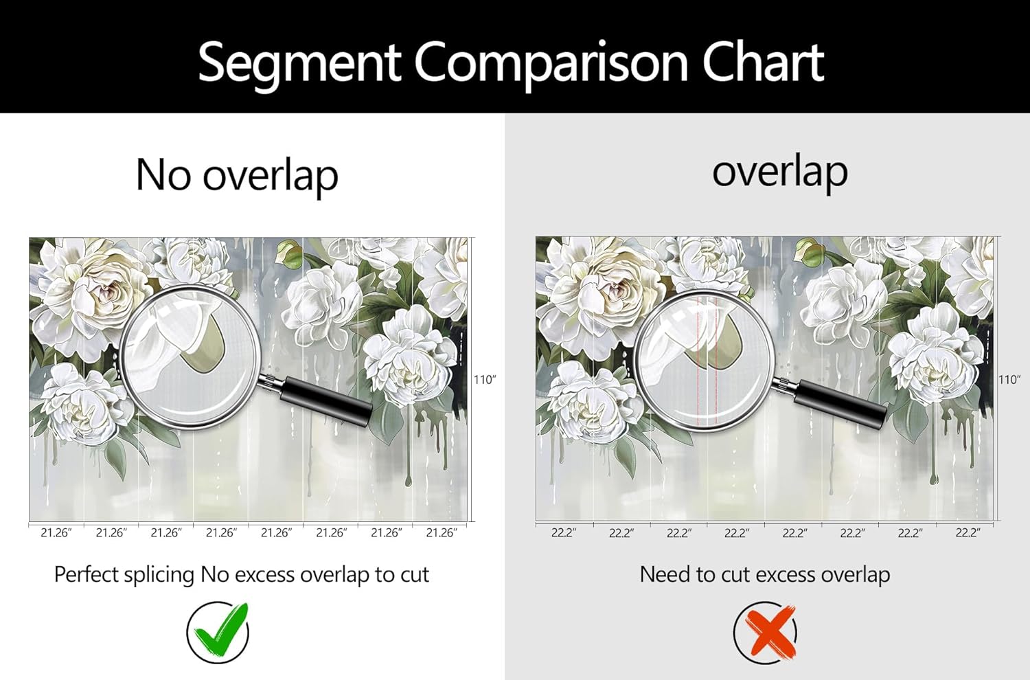 - Mural Size: The total size of this mural wallpaper is 170" x 110" / 432CM x 280CM (W x H), cut into 8 pieces, each measuring 21.26" x 110", for easy installation.