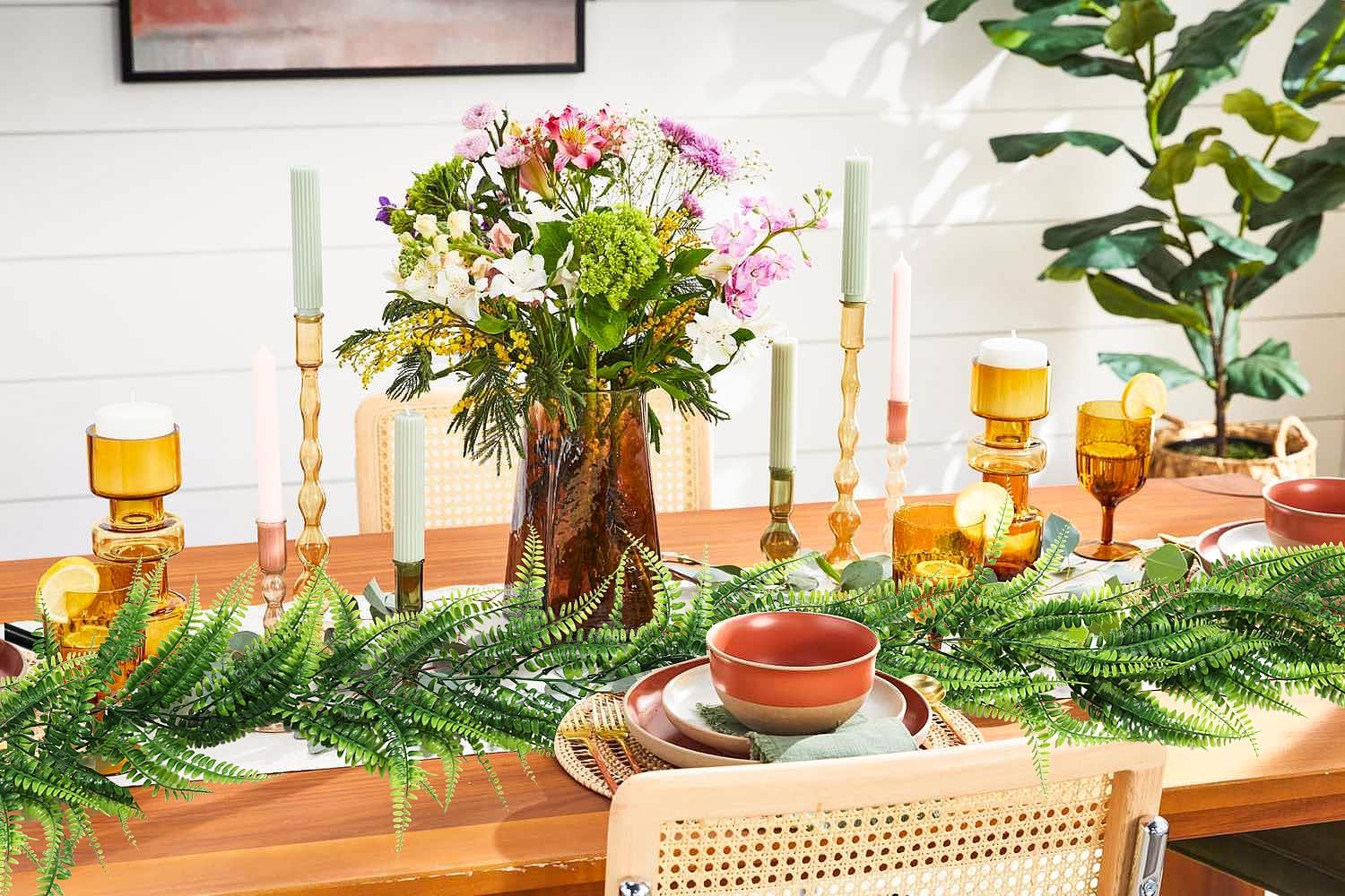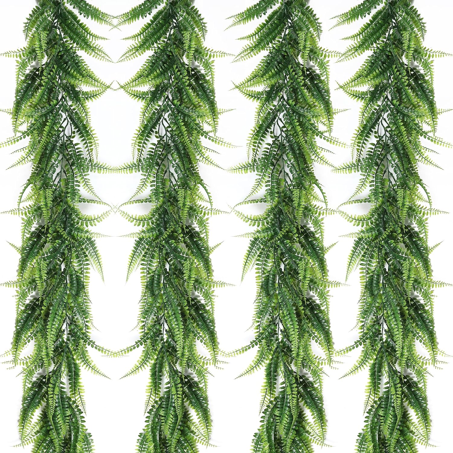 - 【Greenery Ivy Garland Size & Packaging】Package includes: 4 packs of ferns garland and 8 hooks. Each boston garland measures 6 ft/185 cm in length. The artificial hanging plants have bright colors and looks very vivid. artificial garland bring the beauty of nature into your life.