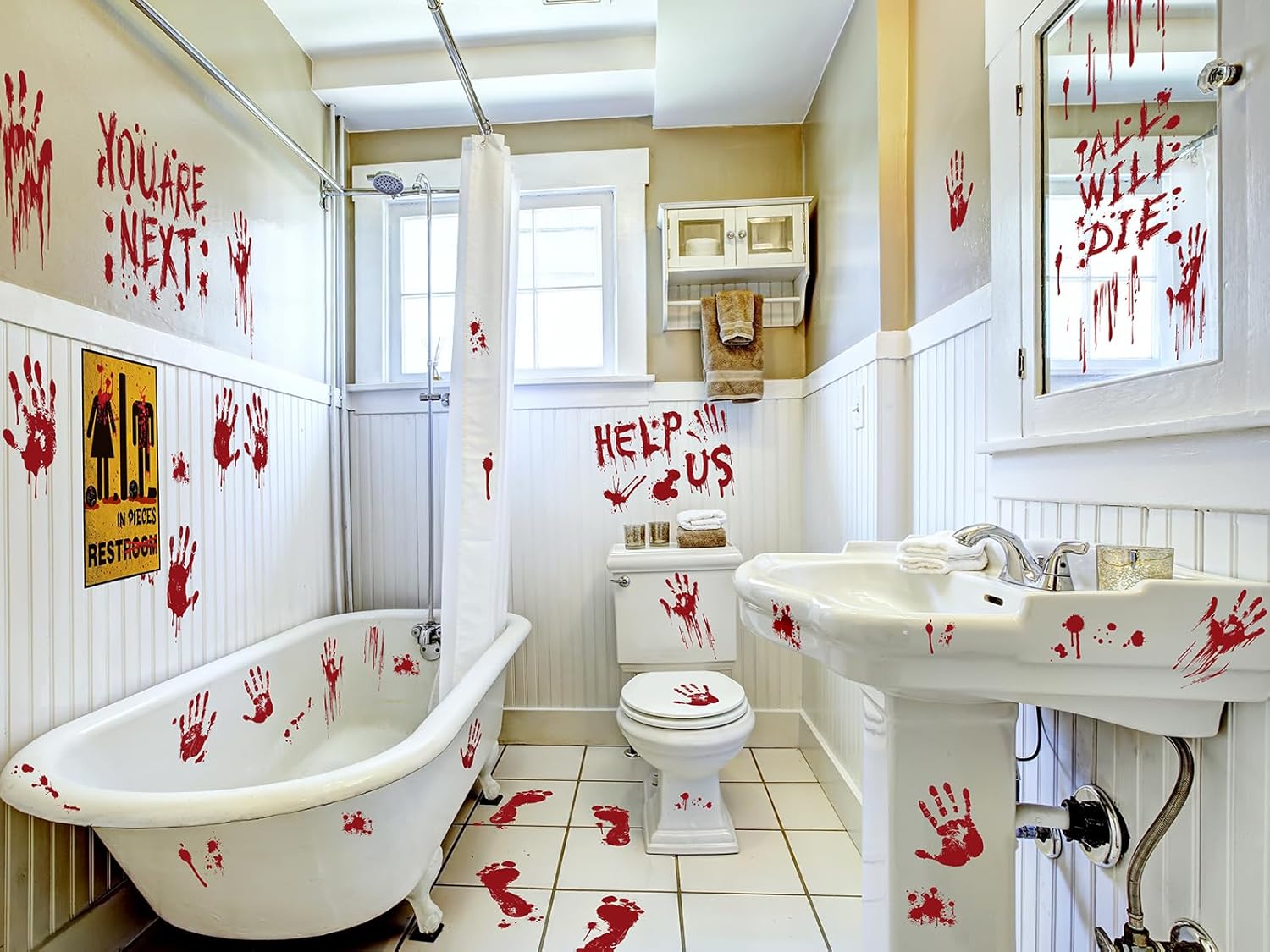 - The Perfect Spooky Party Decoration: Turn your home into the scariest house on the block! Decorate floors, stairs, and pathways with these blood-streaked prints and handprints to simulate a horrifying scene. Place them on your driveway, walkway, or even bathroom steps to create a frightening effect that will shock and amaze your guests. These stickers can transform any location into a chilling spectacle.