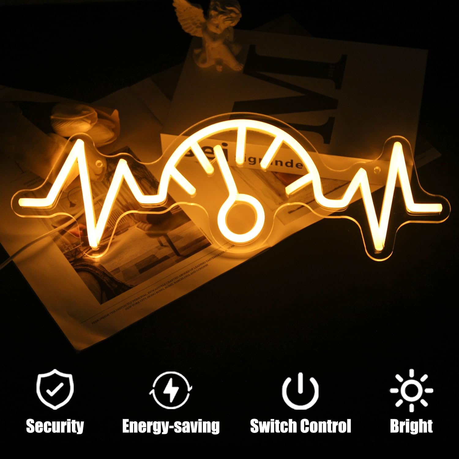 - 【Easy to Install】There are two circular hanging holes on the backplate, which is convenient for you to hang automobile speedometer neon sign anywhere you want. Neon car sign adopts 5V low-voltage advanced electrode system.