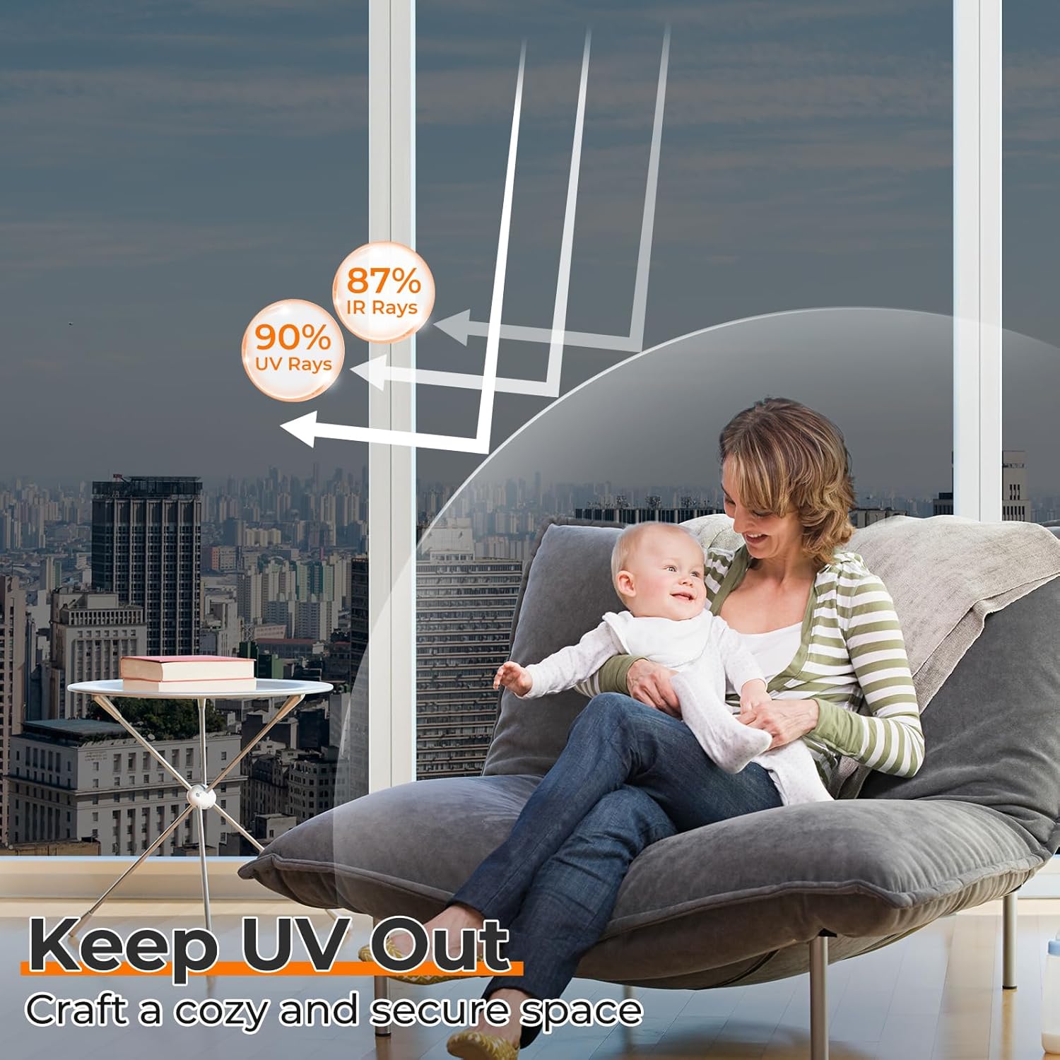 - UV Protection, Reduce Glare: By blocking up to 90% of UV rays and 87% of IR rays, reflective window film helps protect your skin and prevents the fading of interior furnishings. Additionally, it reduces glare, enhancing visual comfort with 12% VLT, making it easier to work or relax