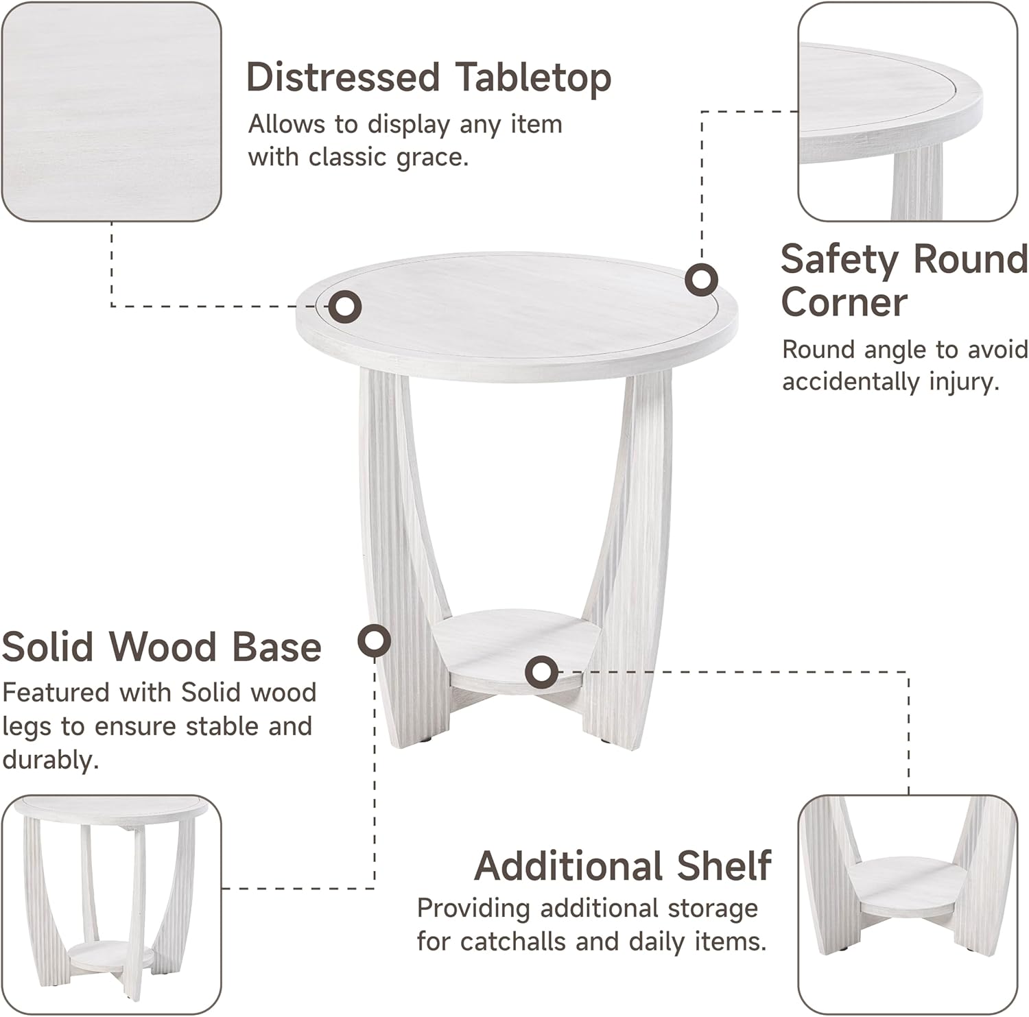 Rustic Farmhouse end Table X 2P with Storage Shelf, French Country Accent Side Table for Family, Dinning or Living Room, Small Spaces, Modern, Round, White