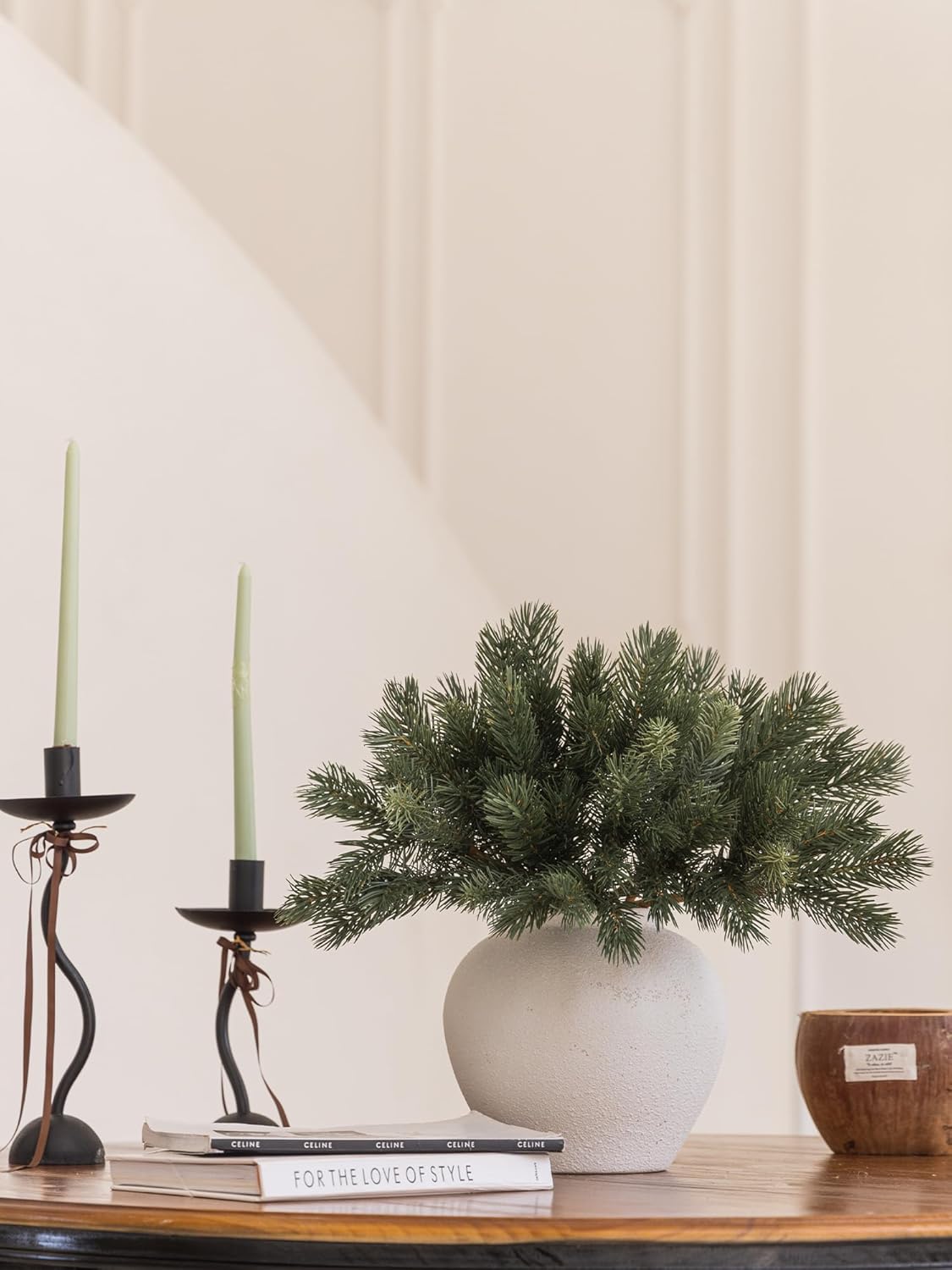 - 【Premium Quality and Natural Appearance】Crafted from high-quality PE, these branches mimic the natural green color of real cedar, offering both aesthetic beauty and durability. After opening the package, simply let the product air out for a few hours to eliminate any initial odor, ensuring a better experience. Note: Vase not included.