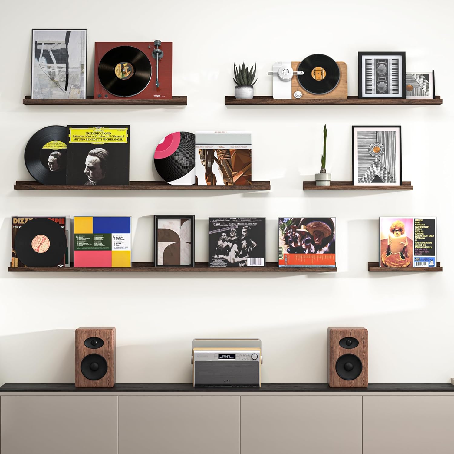 - Picture ledge Shelf for Walls: If you have dozens of pictures but don't know how to display them, Heimlove picture ledge shelves(especially large size) for walls are perfect! With our hanging shelves, store and display different types and sizes of photo frames in one place. The ledge in front of the wall shelves could prevent your precious items from falling off.