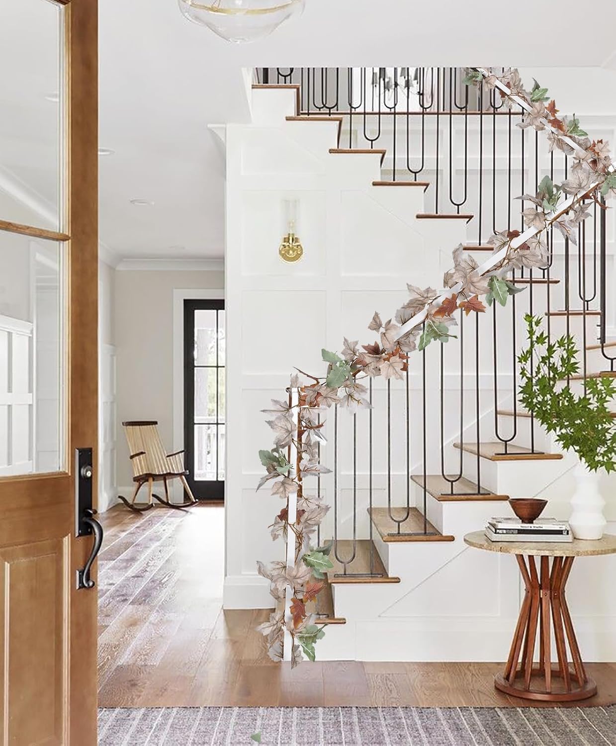Lvydec 2 Pack Fall Maple Garland - 5.9ft/Piece White Artificial Fall Foliage Garland Colorful Autumn Decor for Home Wedding Party