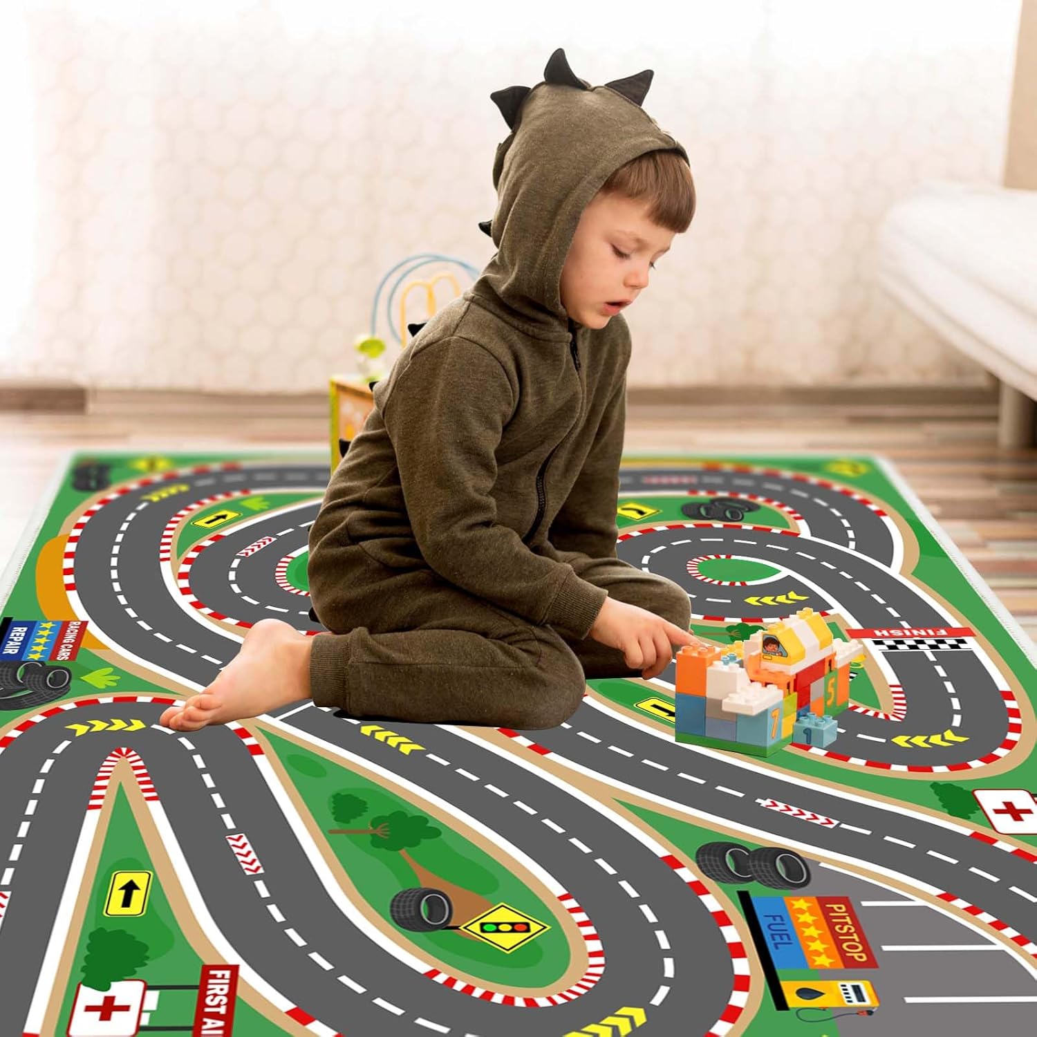 - 【Infinite Happiness】: Our kids road rug set helps your child enjoy endless educational fun with its unique urban life design and wonderful colors! It is an ideal choice for promoting children's vocabulary development, hand eye coordination, motor skills, pretend play, and narrative role-playing skills!