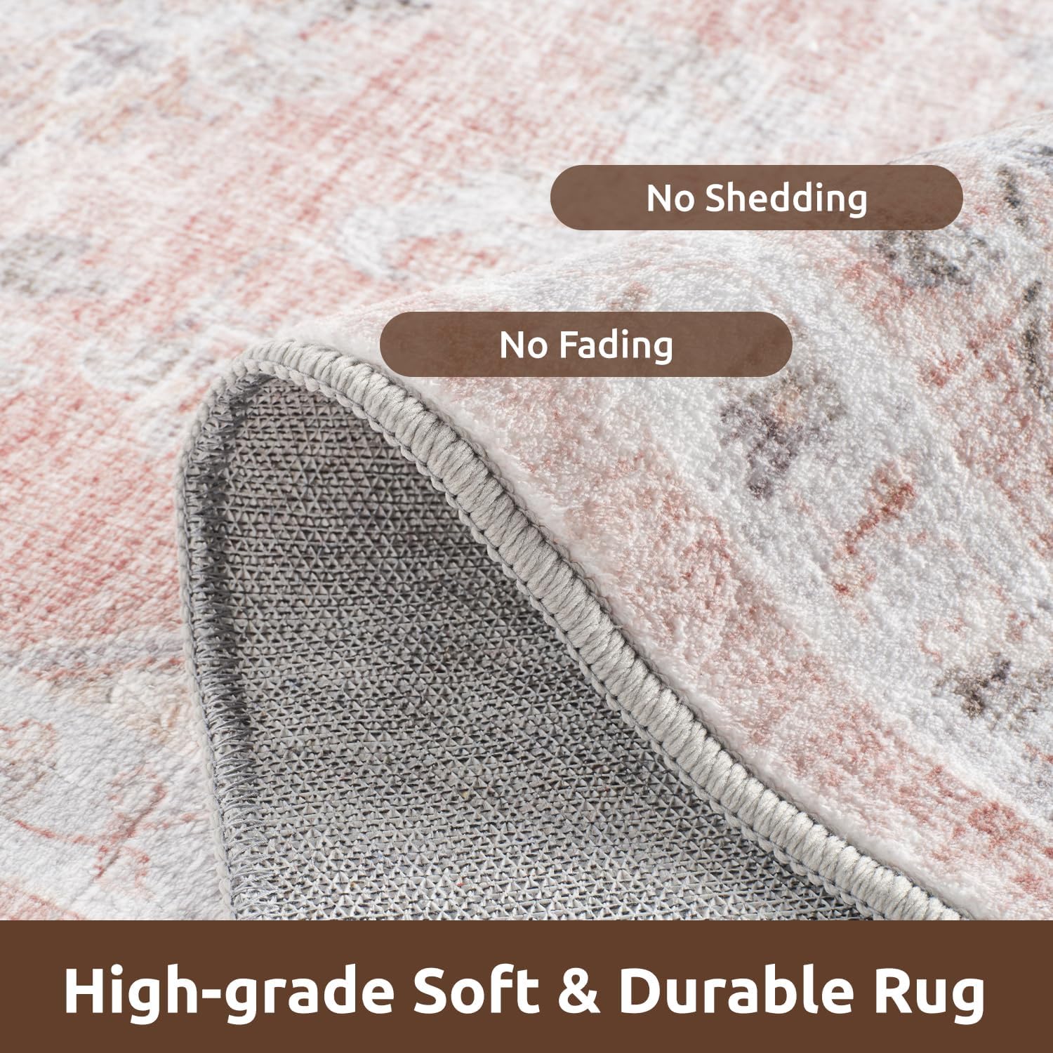 AMOAMI-Area Rug 9X12 Rugs for Living Room-Vintage Soft Pink Rugs for Bedroom-Non Slip Carpet-Washable Rug for Dining Room Living Room Bedroom Office Under Table