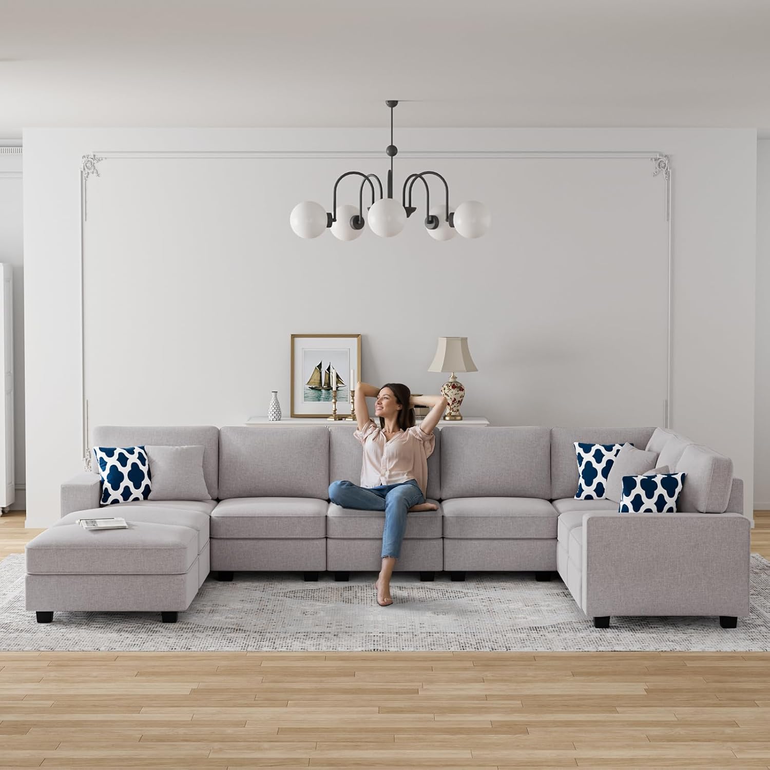 L Lengend Vansen Modular Sectional Sofa U Shaped Couch with Ottoman Modern Reversible Corner Sectional Couch for Living Room (Light Grey, U Shaped Sofa-5)