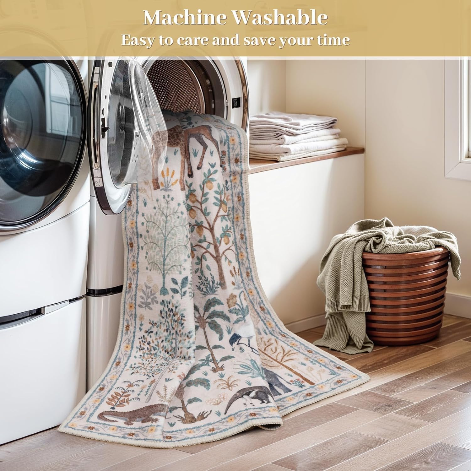 - Soft Printed Jungle Rug: Our area rug 5x7 is made from faux wool fibers, which are super soft and comfortable to step on. This living room rug has vibrant jungle animal motifs against a neutral backdrop, making your space stand out effortlessly