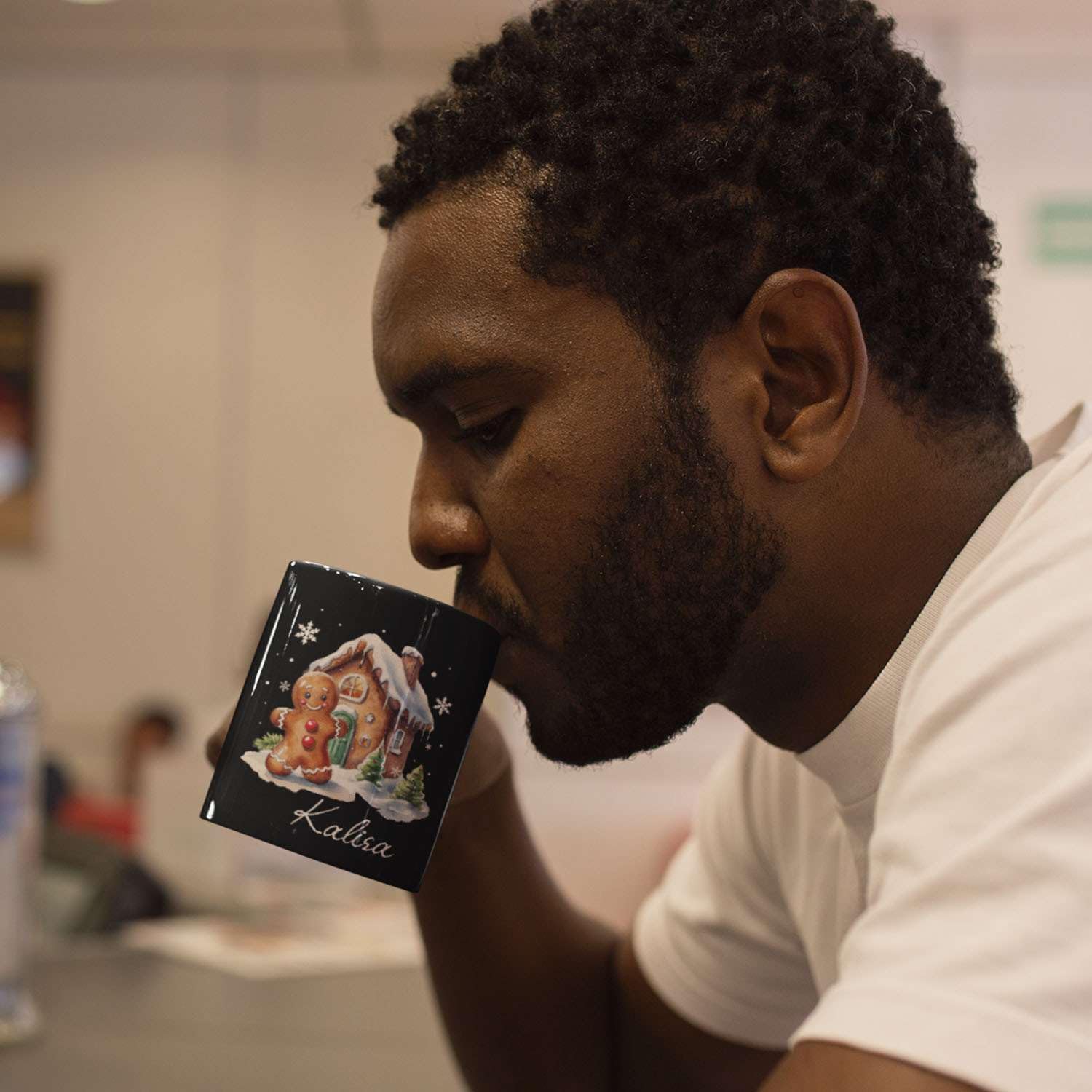 Personalized Christmas Gingerbread Black Cup, Christmas Gingerbread House Design Mug, Customized Name Christmas Coffee Cup 11oz 15oz, Custom Xmas Themed Ceramic Mug, Gift For Son Daughter