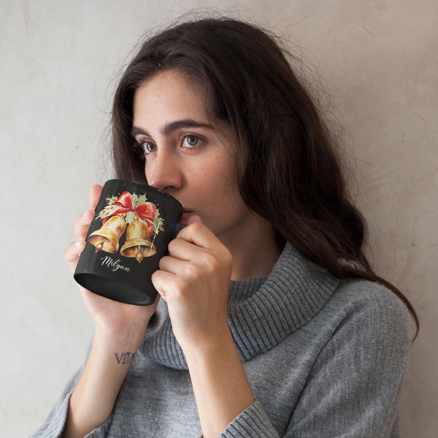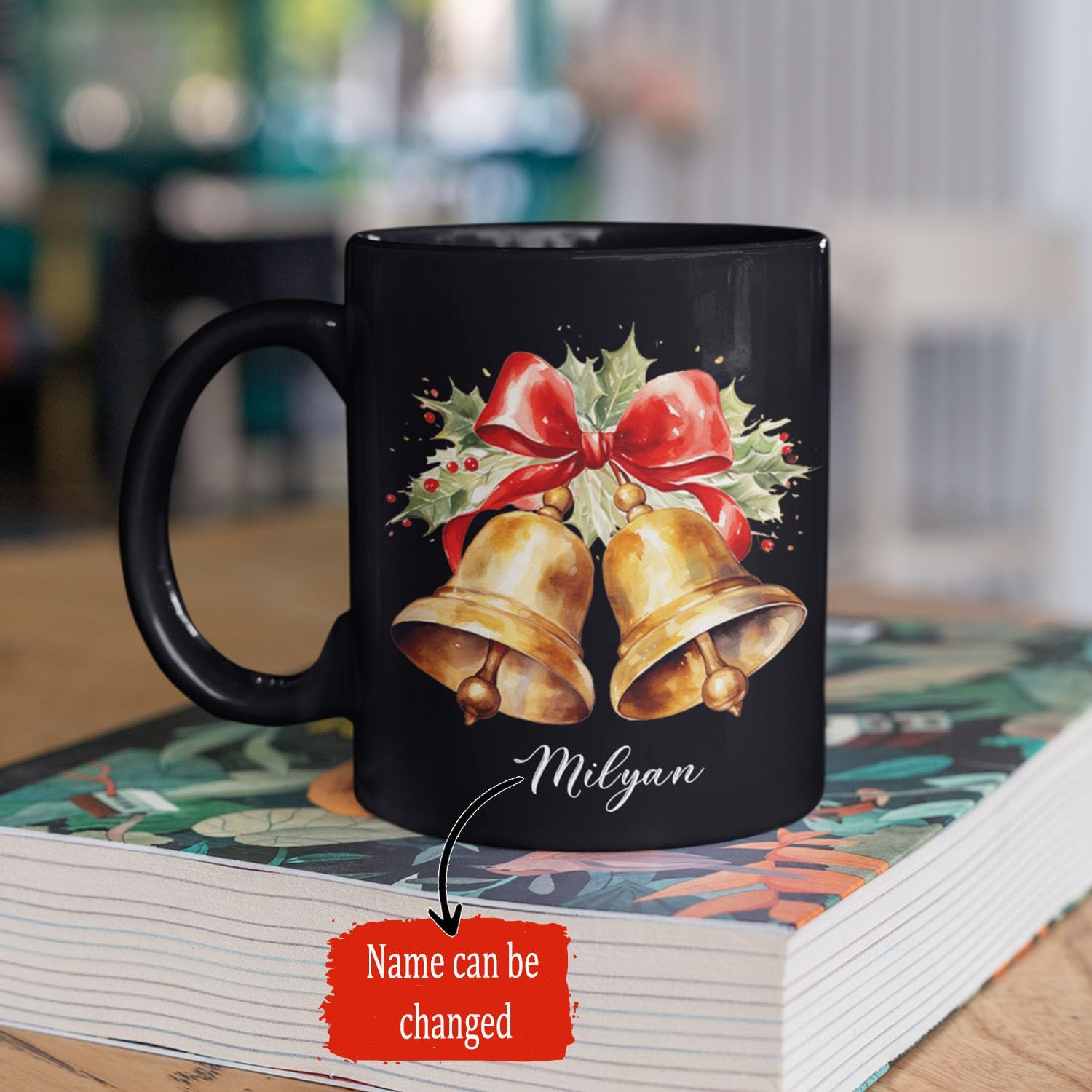 - š UNIQUE DESIGN MUG: Celebrate the holiday season with this "Christmas Jingle Bells Design Ceramic Mug". Click "Customize Now" to add a name, creating a festive and personalized gift great for the Christmas season. This black ceramic mug is ideal for enjoying warm winter drinks in style.