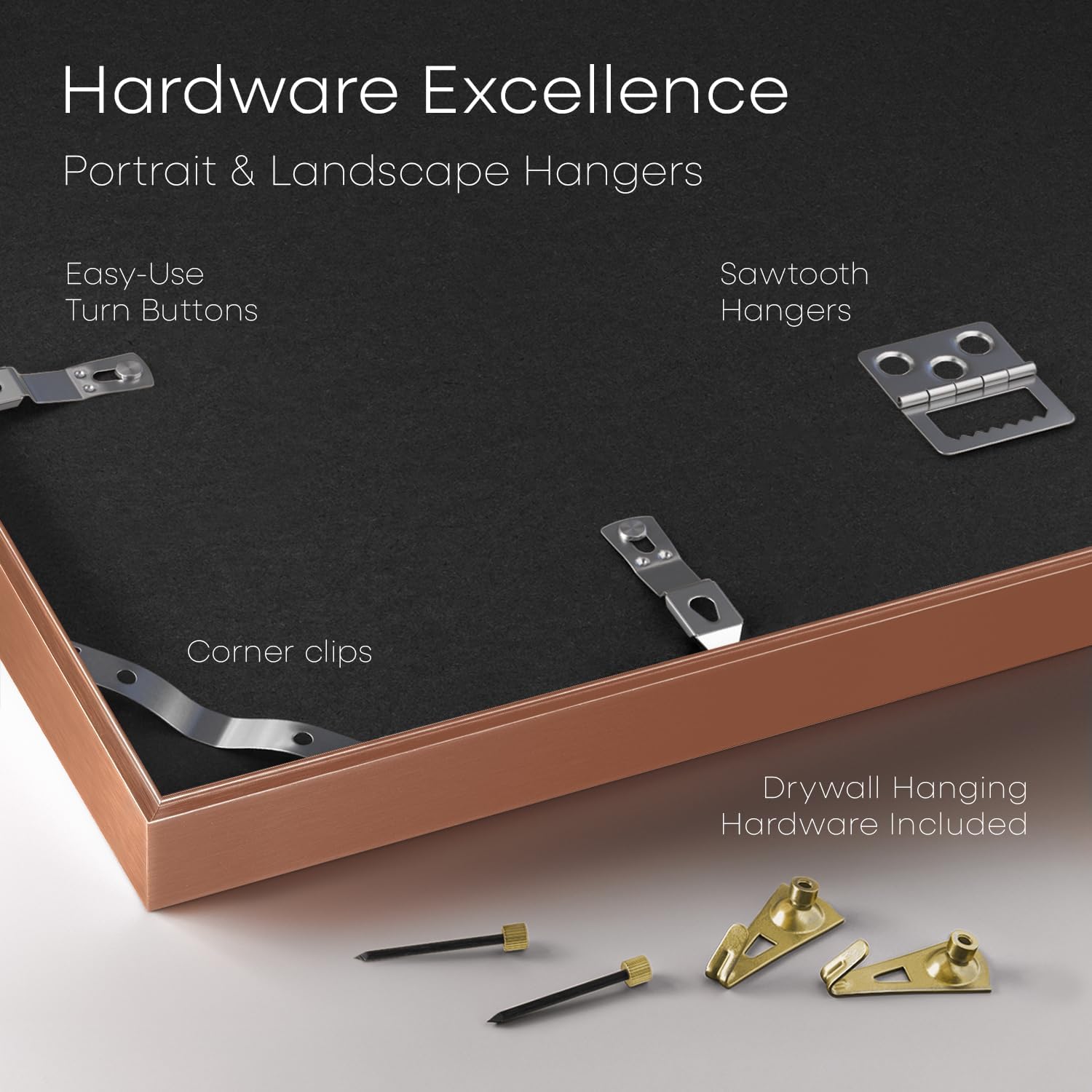 Homeforia 14x17 Picture Frame Rose Gold, High End Metal 14x17 Poster Frames with Mat 11x14 inch Photo, 14 x 17 Rose Gold Frame Matted to 11 by 14 Print, 17x14 Frame, Tempered Glass, Wall Kit, Set of 1